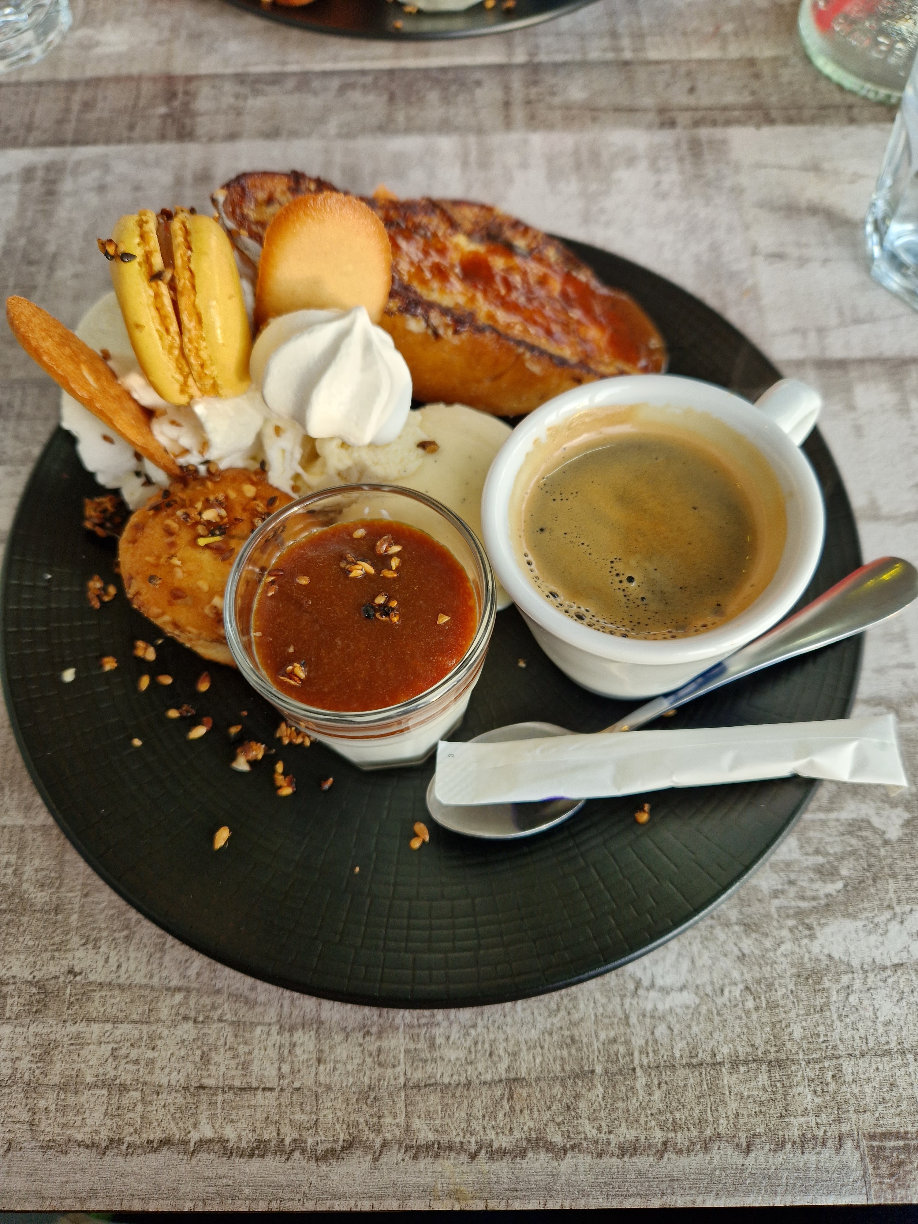 Nous sommes venus dimanche manger une glace et des cafés, nous sommes revenus aujourd'hui pour manger ce midi, c'était super bon , le patron/ gérant très accueillant très sympathique, son équipe aussi, je recommande a 100% nous reviendrons avec plaisir 😄