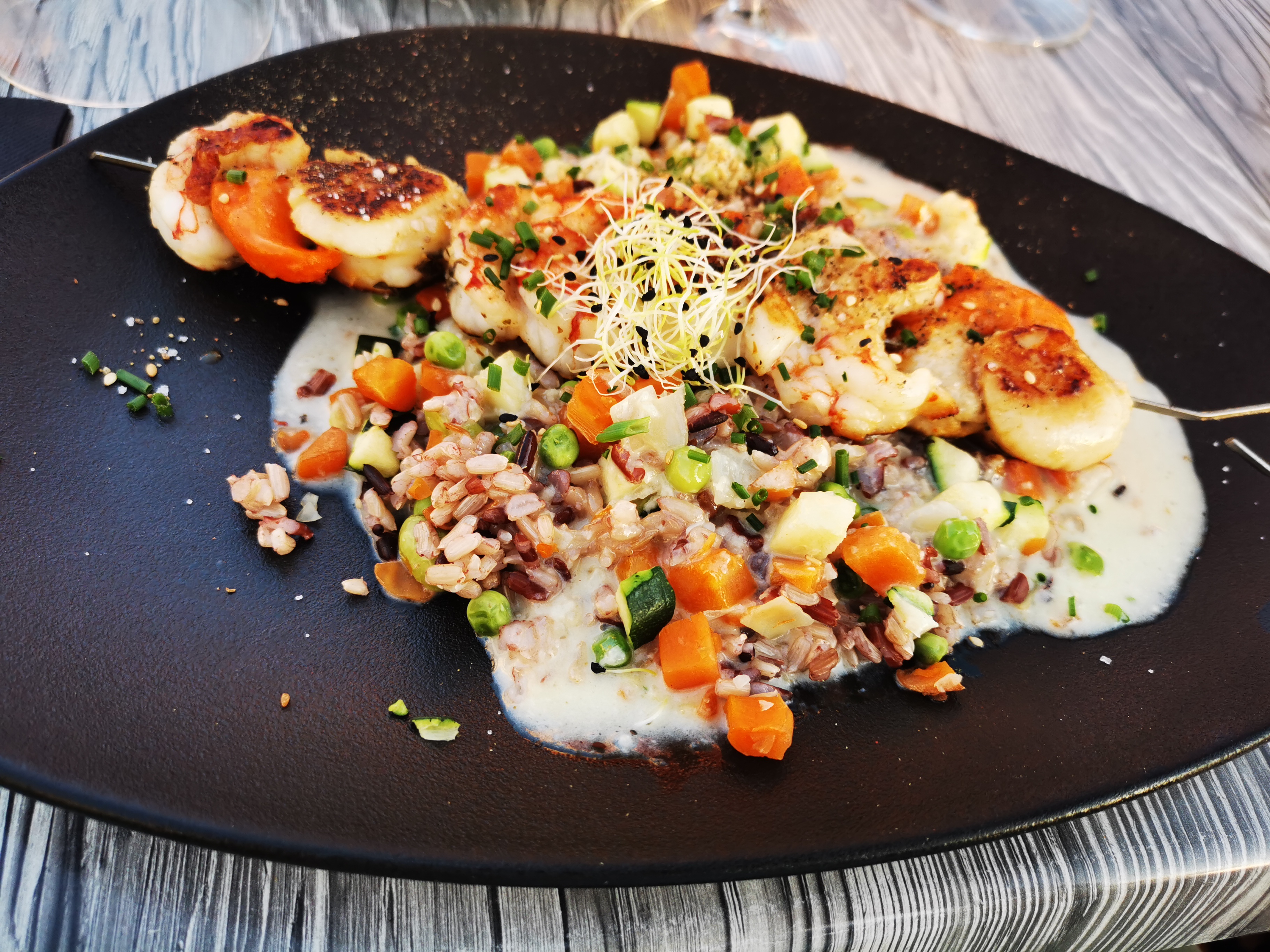 Quentin et Fabrice sont des passionnés et cela se voit dans leurs assiettes ! La brochette de saint jacques et crevettes ... Un délice 🤩 une adresse à ne pas manquer sur SGXV . Un plus restaurant ouvert le soir vue sur la mer