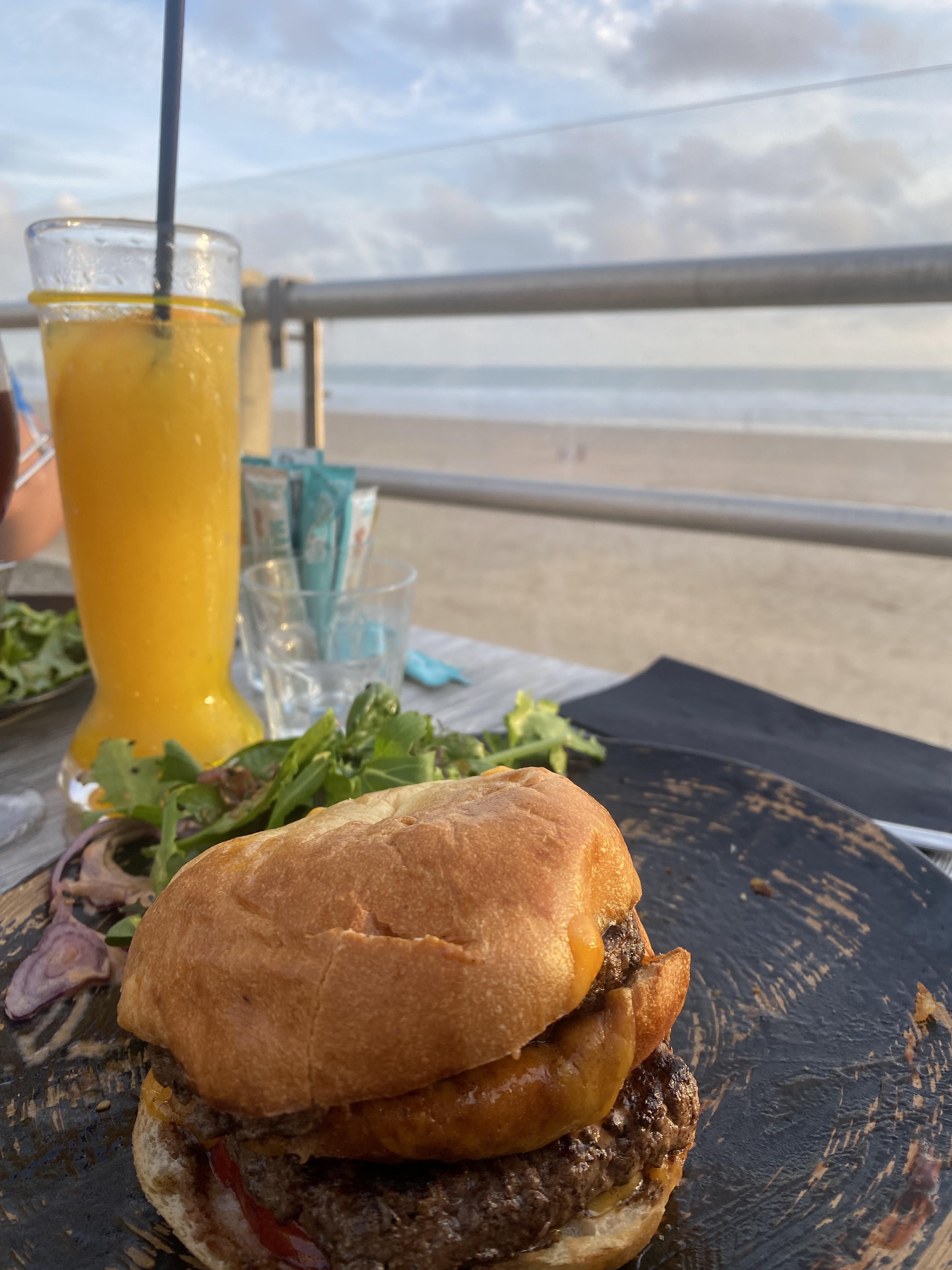 Bon restaurant. Malgré un service chargé, nous avons eu une place privilégiée, au bord de mer, le service était rapide. Le personnel a su garder le sourire malgré le monde. Les burgers étaient bons. (les pommes de terres pas assez cuites pour certaines...) Points négatifs : - Je voulais des moules-frites, mais pas de moules durant le mois de mai dans ce restaurant. - Pas la possibilité d’enlever les oignons car service pleins, c’est dommage. - Pas eu de carafe d’eau après l’avoir demandé. - Des softs à 4,50€ en canette …