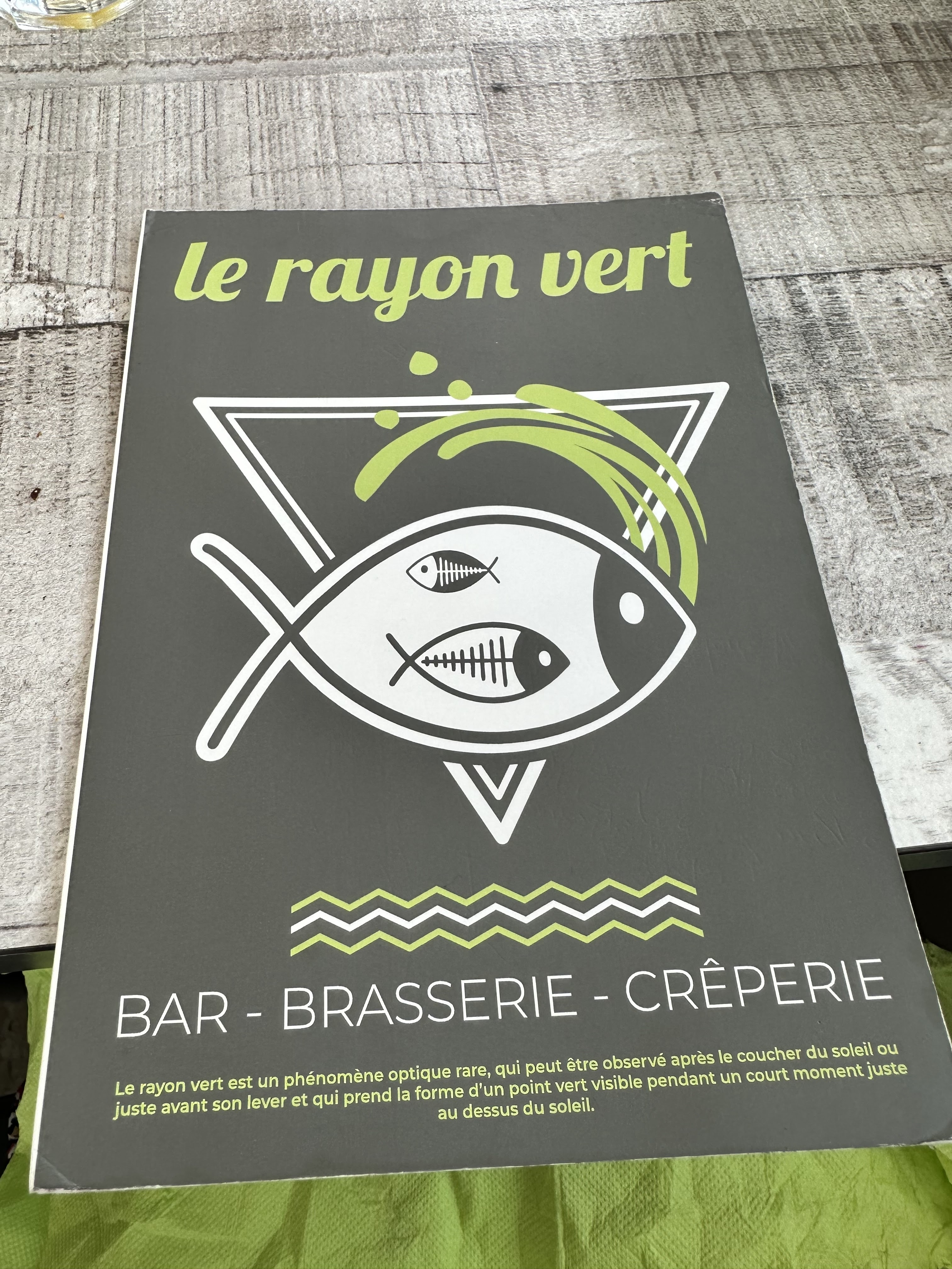 L année dernière nous avions vu le personnel d un bar y allait faire son repas de fin de saison, on s est dit si les locaux y vont c est que bon, puis on a demandé à Ludo aux Chouans qui nous a aussi conseillé d y aller. On a donc hier midi été manger au rayon vert et on.a adoré l accueil est parfait et les plats excellents. Franchement la gentillesse de toute l équipe et on ressent surtout cette ambiance familiale. Je vous conseille donc très fortement ce restaurant. Il y en a pour toutes les bourses et tous les goûts. On vs souhaite une bonne saison avec des clients aussi agréables que vous l êtes 😉