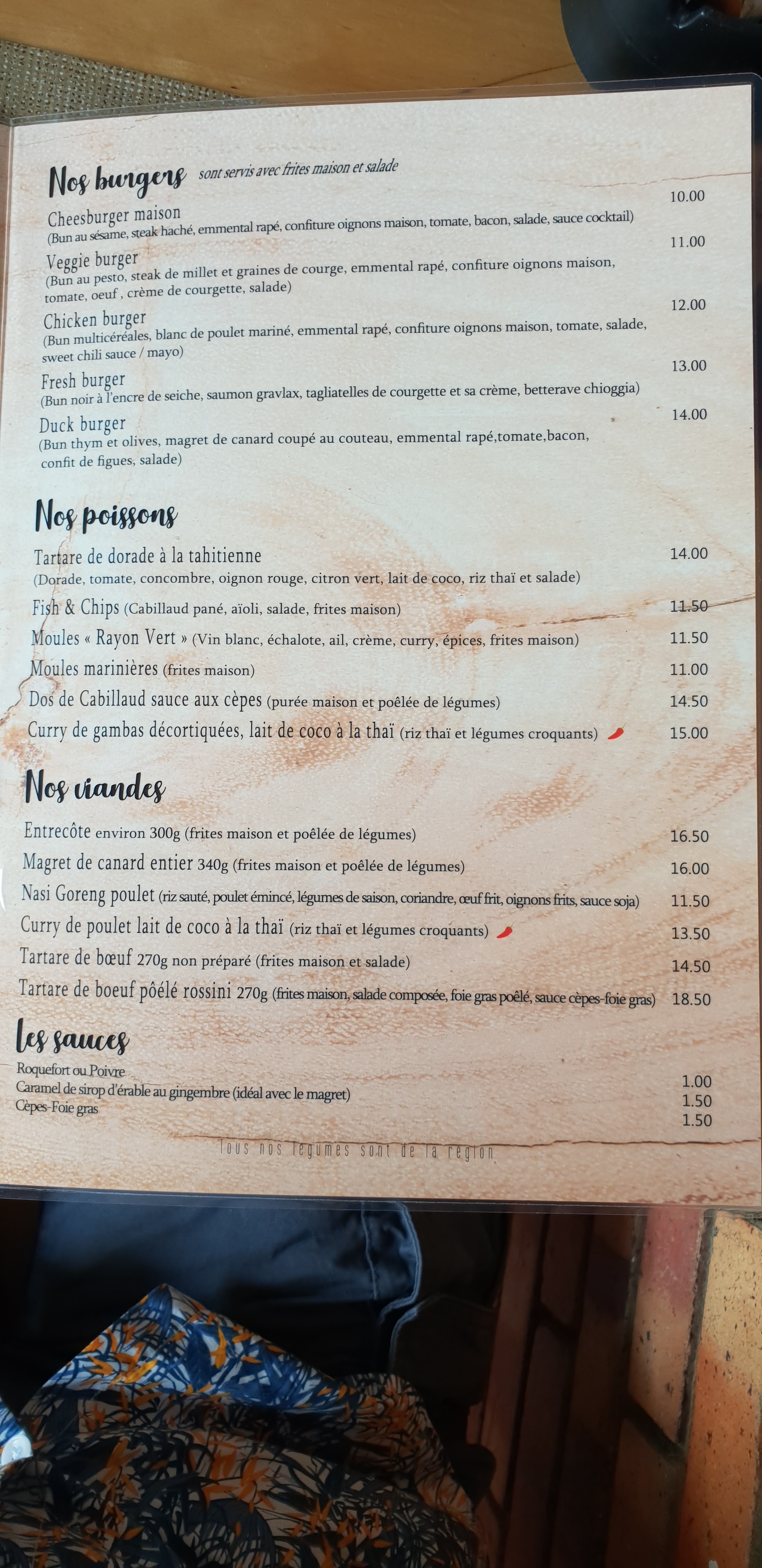 Super endroit, bonne ambiance, personnel sympa, accueillant et souriant. Assiettes très copieuses et supers bons repas. Frites fraîches maison excellentes et un tartare de dorade au lait de coco à tomber parterre aux dires de mon mari ;). On s'est RÉGALÉ !!!! Nous reviendrons avec grand plaisir !!!