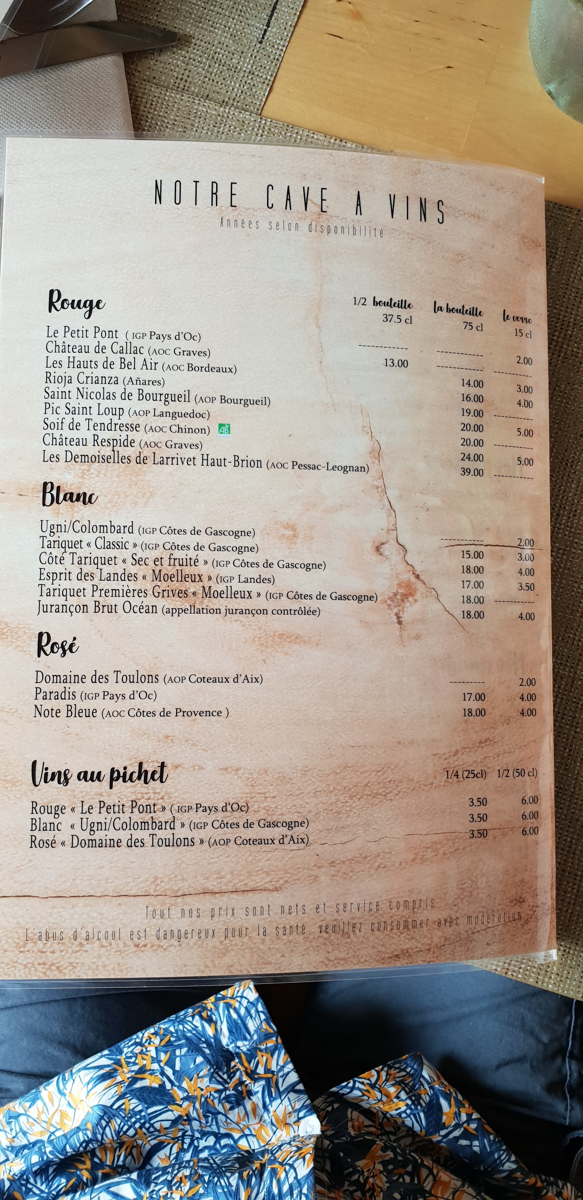 Après avoir testé plusieurs restaurants de Seignosse-plage , il est certain que celui - ci à la carte la plus complète. Les mets sont bons , salade et cocote de moule bien généreuse. Bon service.