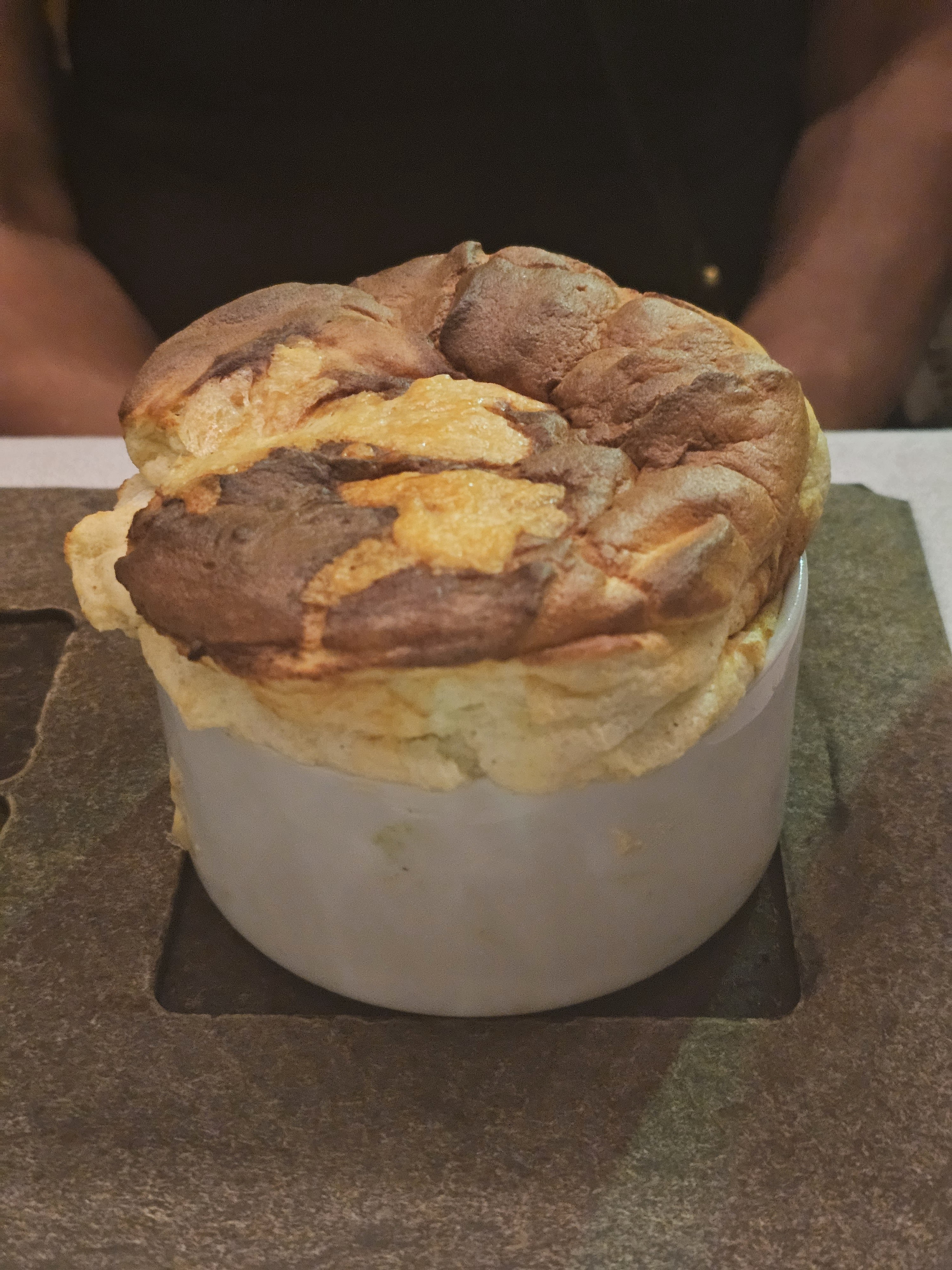 Incroyable soufflé. Je suis venu ici à chaque voyage à Paris. Le soufflé au fromage est mon préféré.