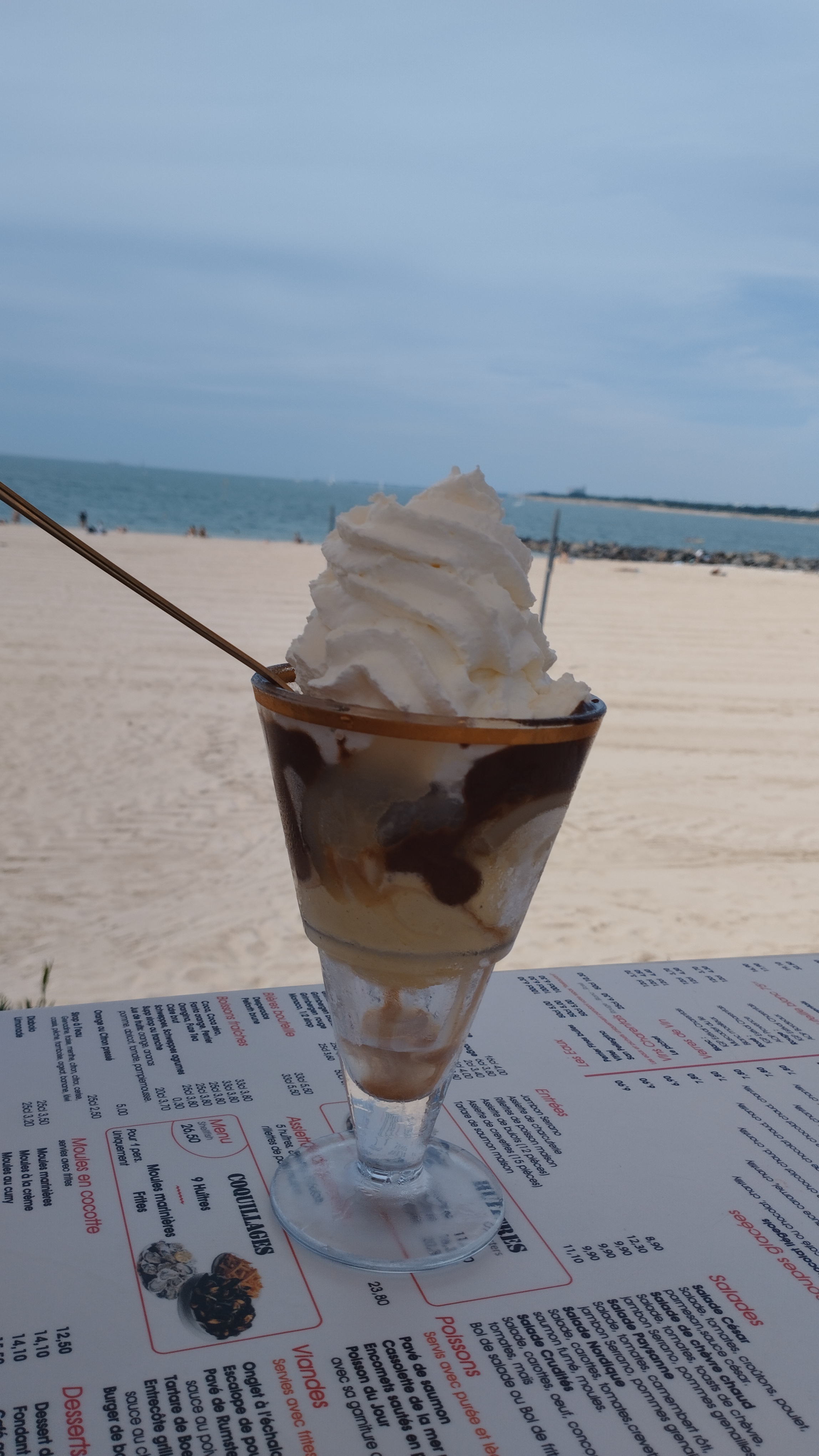 Restaurant accueillant, au top face à la mer à des prix abordable, très bon! Nous avons manger des moules avec frites très bonnes! Menu enfant top aussi steack frite et boule de glace. Désert très copieux aussi crêpe banana. Je recommande !