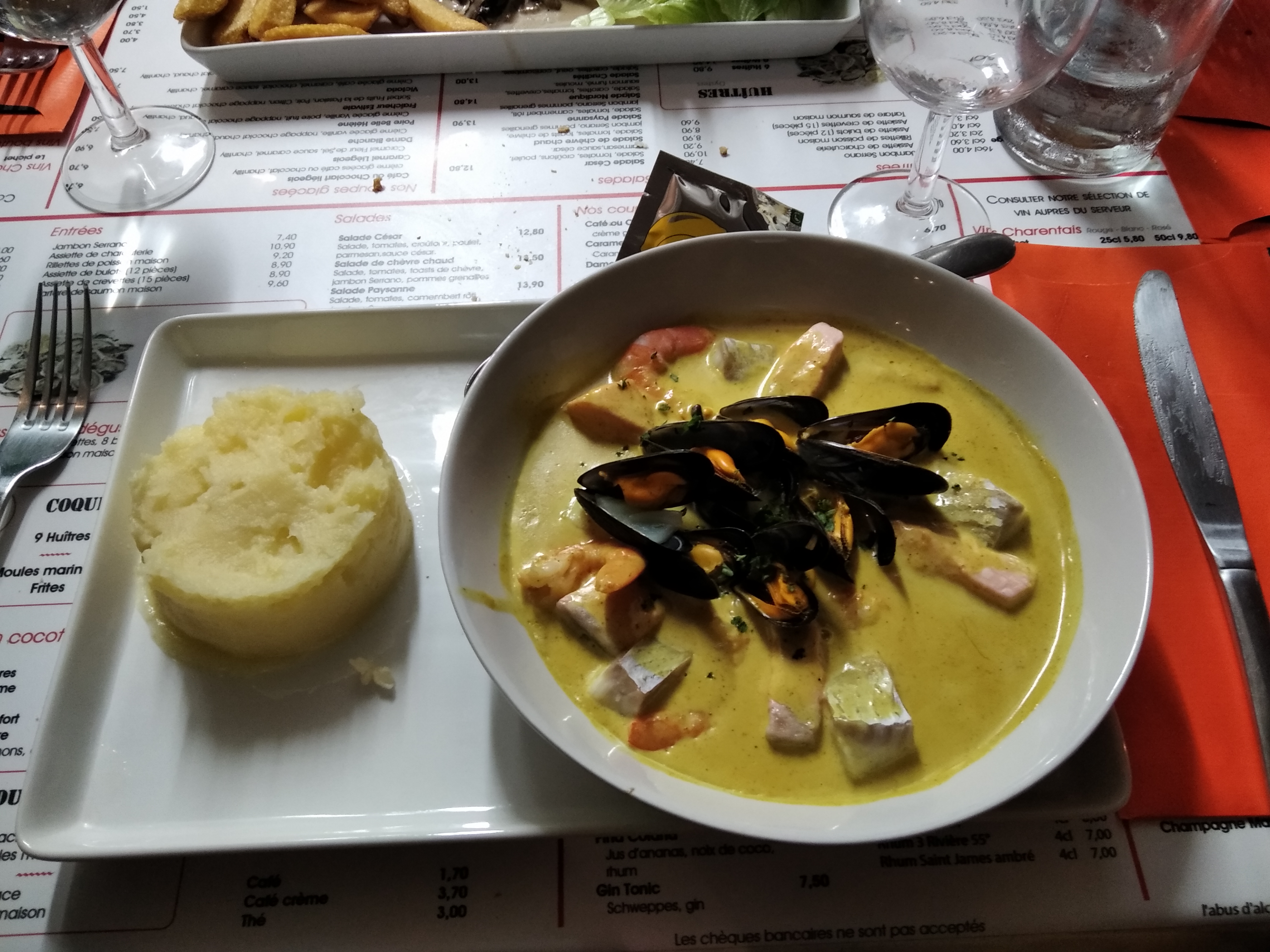 Bien . Pour moi les moules étaient trop cuit ou trop réchauffer j ai pas retrouvé le goût de chorizo comme annoncé sur la carte. La crêpes était bonne.