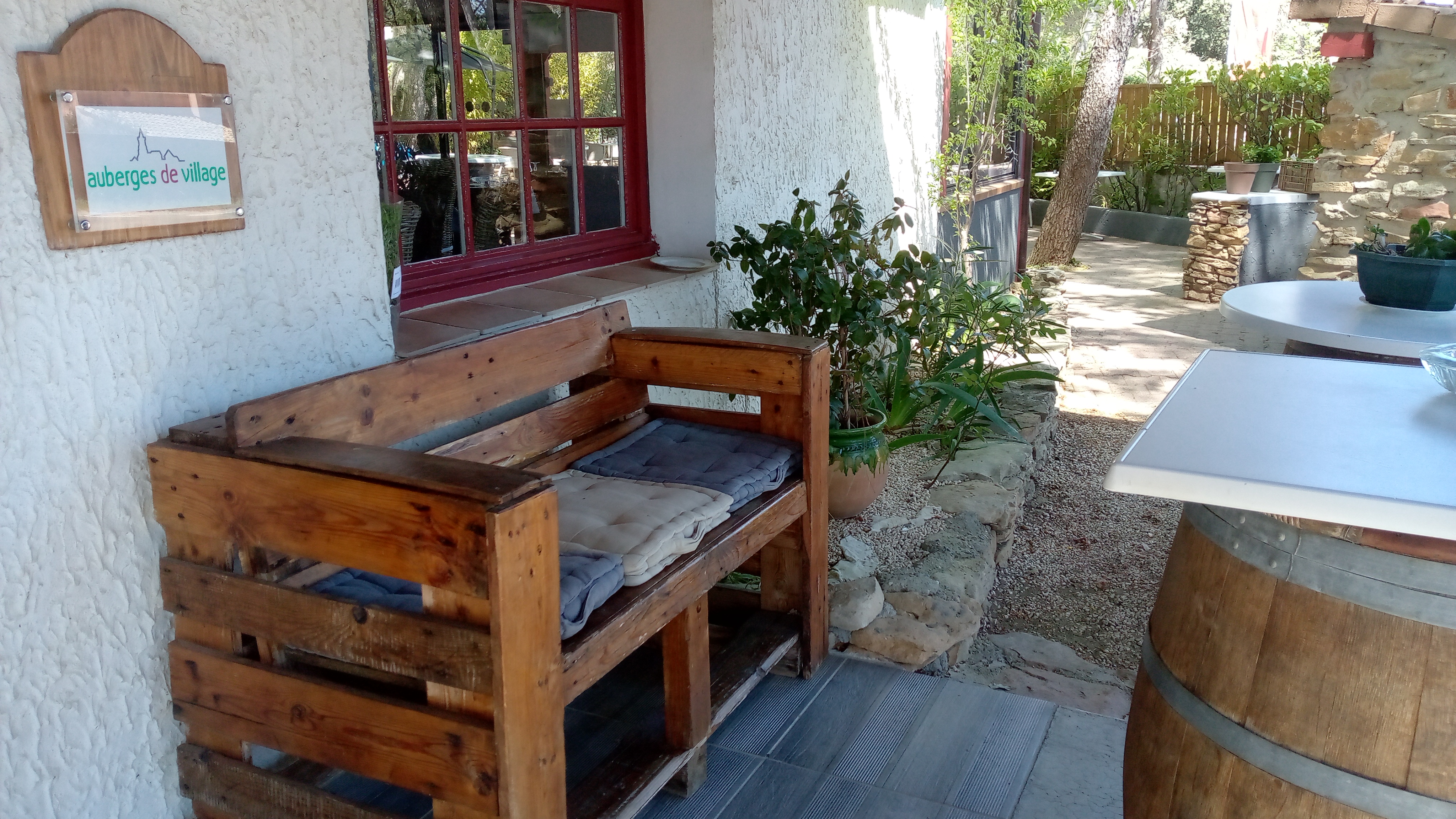 Un peu à l'écart de la route des vacances, la terrasse ombragée permet de passer un excellent moment de repos autour d'un bon repas.