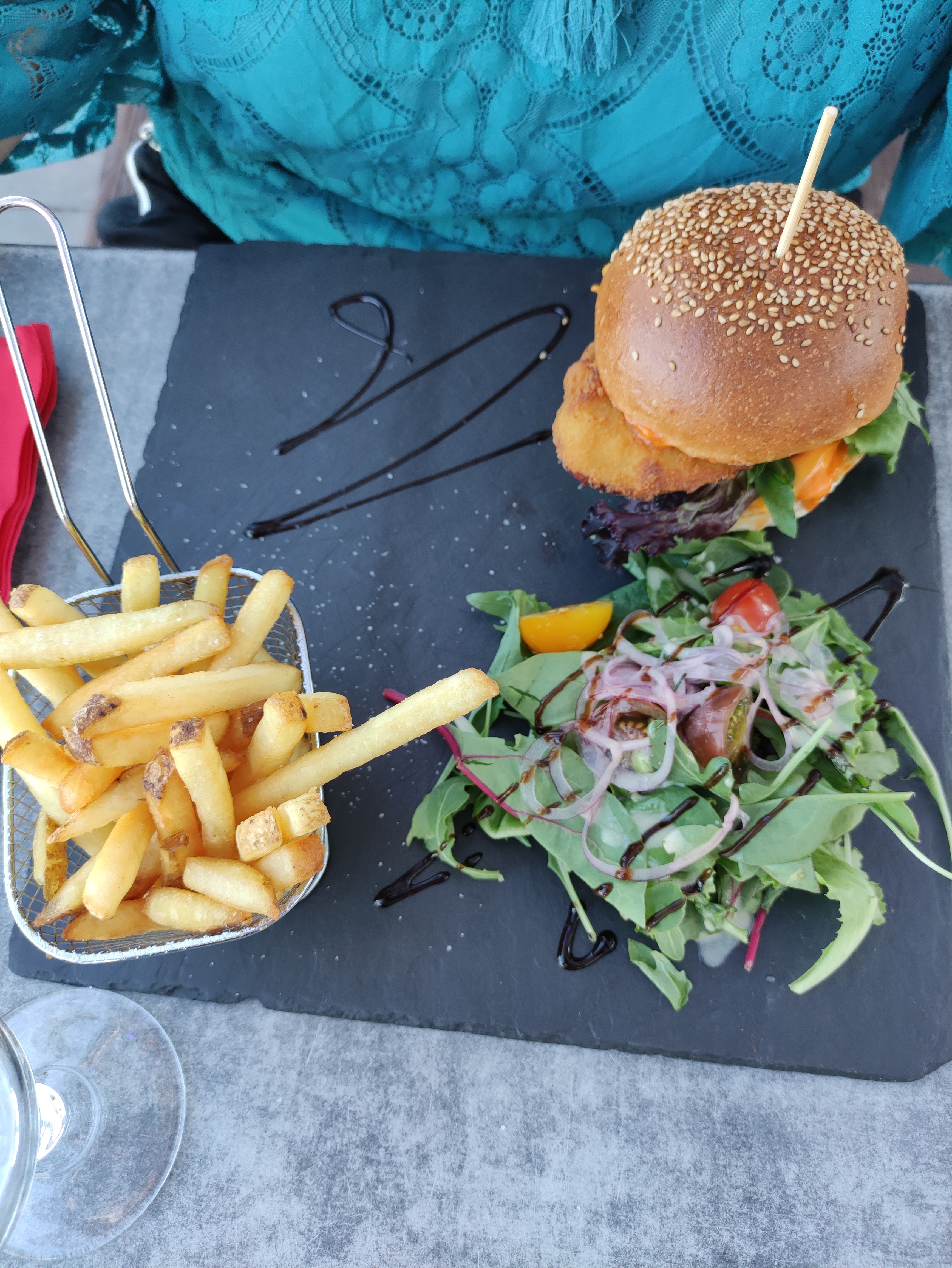 Généreux et gourmand 👌🏽 c'était un pur délice. Mon compagnon, ma soeur et moi avions grandement apprécié le repas! Mon compagnon a trouver les moules marinières excellentes, ma soeur était repus de sa salade de chèvre. Quant à moi, le burger était délicieux, le poulet tendre comme un poulet de Brest, sauce parfaitement équilibrée et fromage coulant sans pour autant être écoeurant ! De plus le cadre était M.A.G.N.I.F.I.Q.U.E. Nous recommandons vivement se restaurant