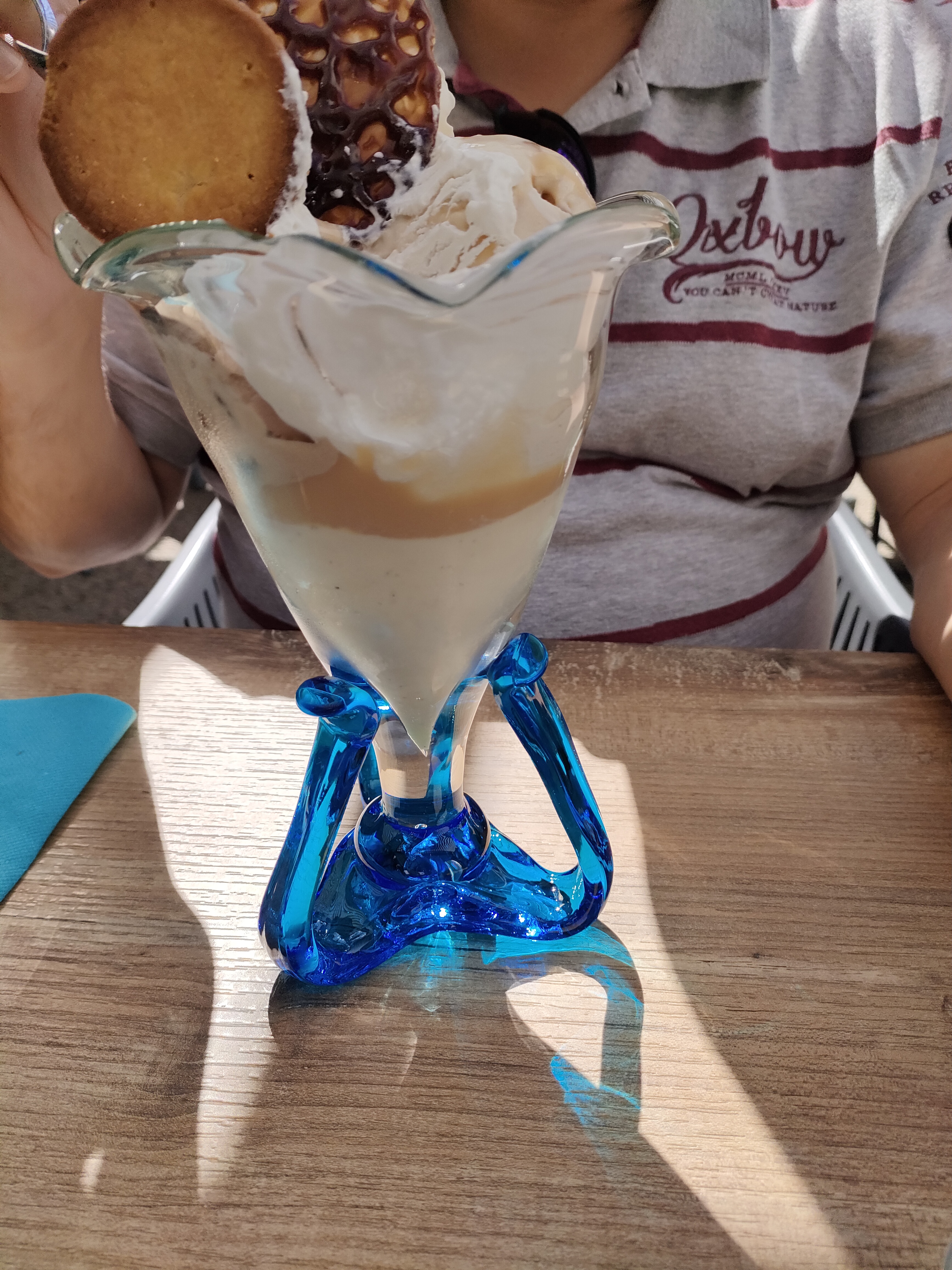 Personnel au top. Au petit soin pour ses clients particulièrement pour ma golden avec une gamelle d eau et une friandise. Les crêpes salées sont excellentes et les 🍨 sont très copieux.