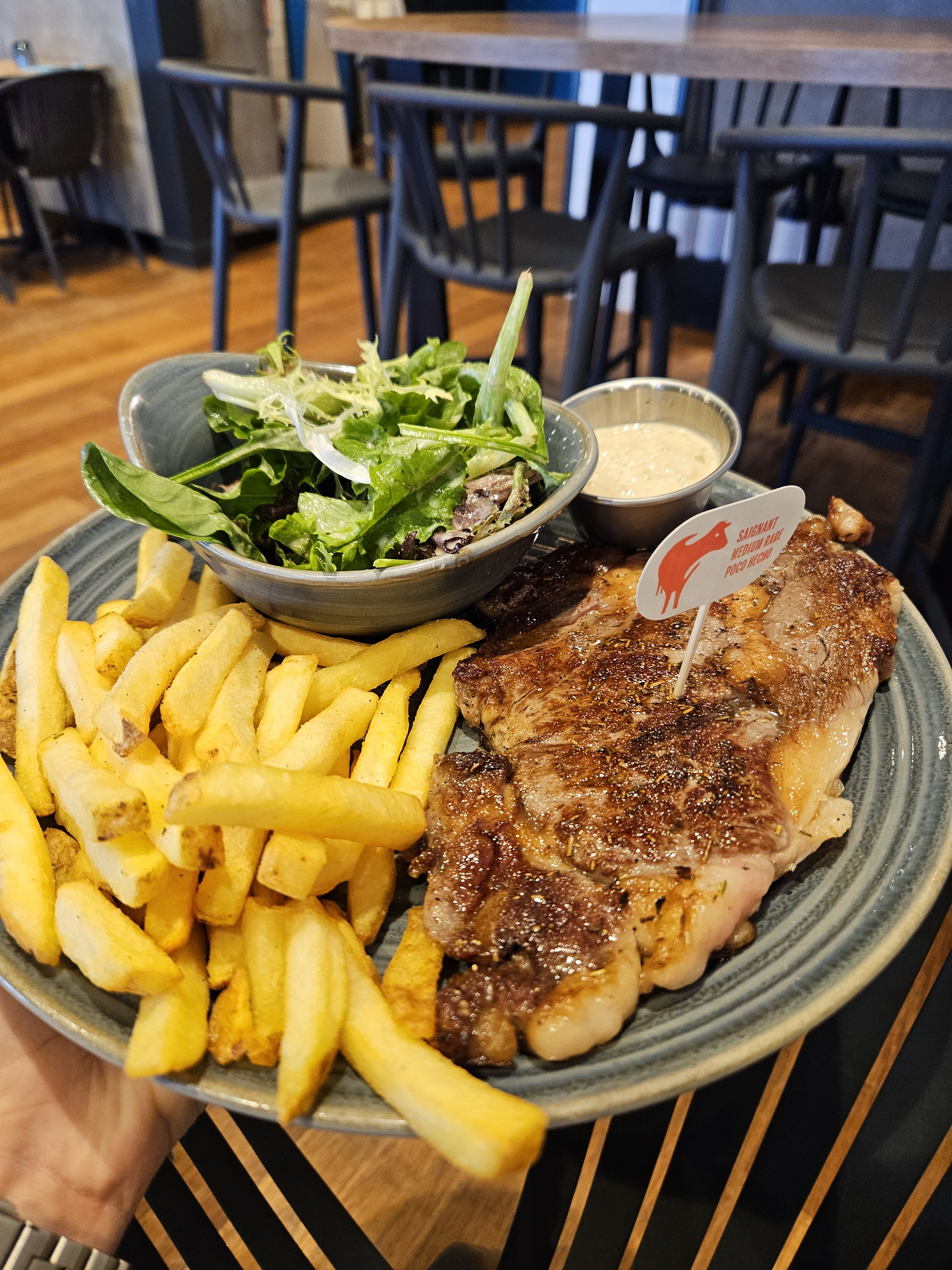 Venue manger un midi . Vraiment très bon l'entrecôte était à la hauteur de nos espérances. La jeune fille qui s'est occupé de nous était attentive et sympathique. On a vu passer une parillada qui nous a donné envie de revenir cet été 😍