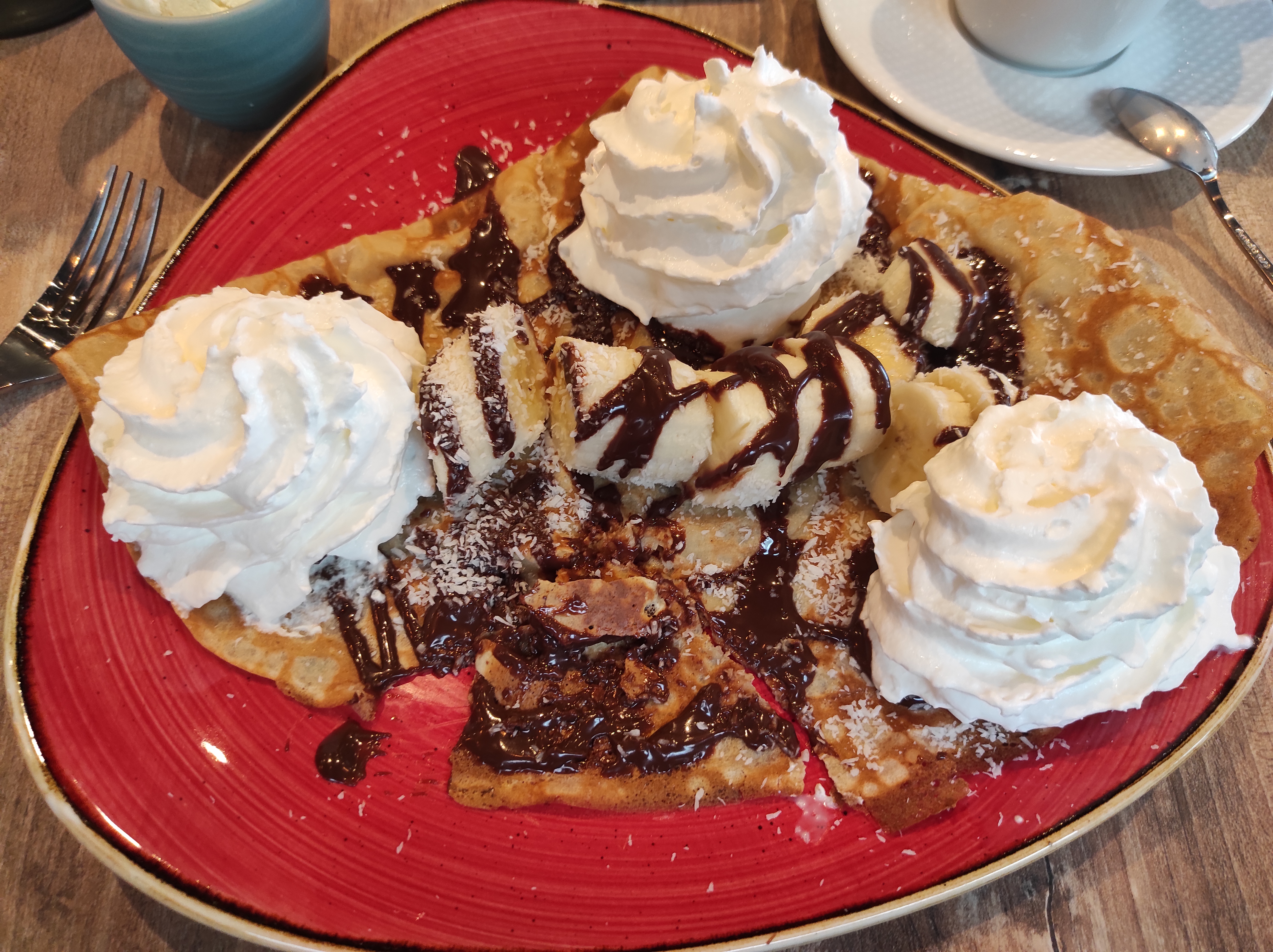 Une superbe apres midi en famille un regal nos crepes sucrées un délice et cappucino