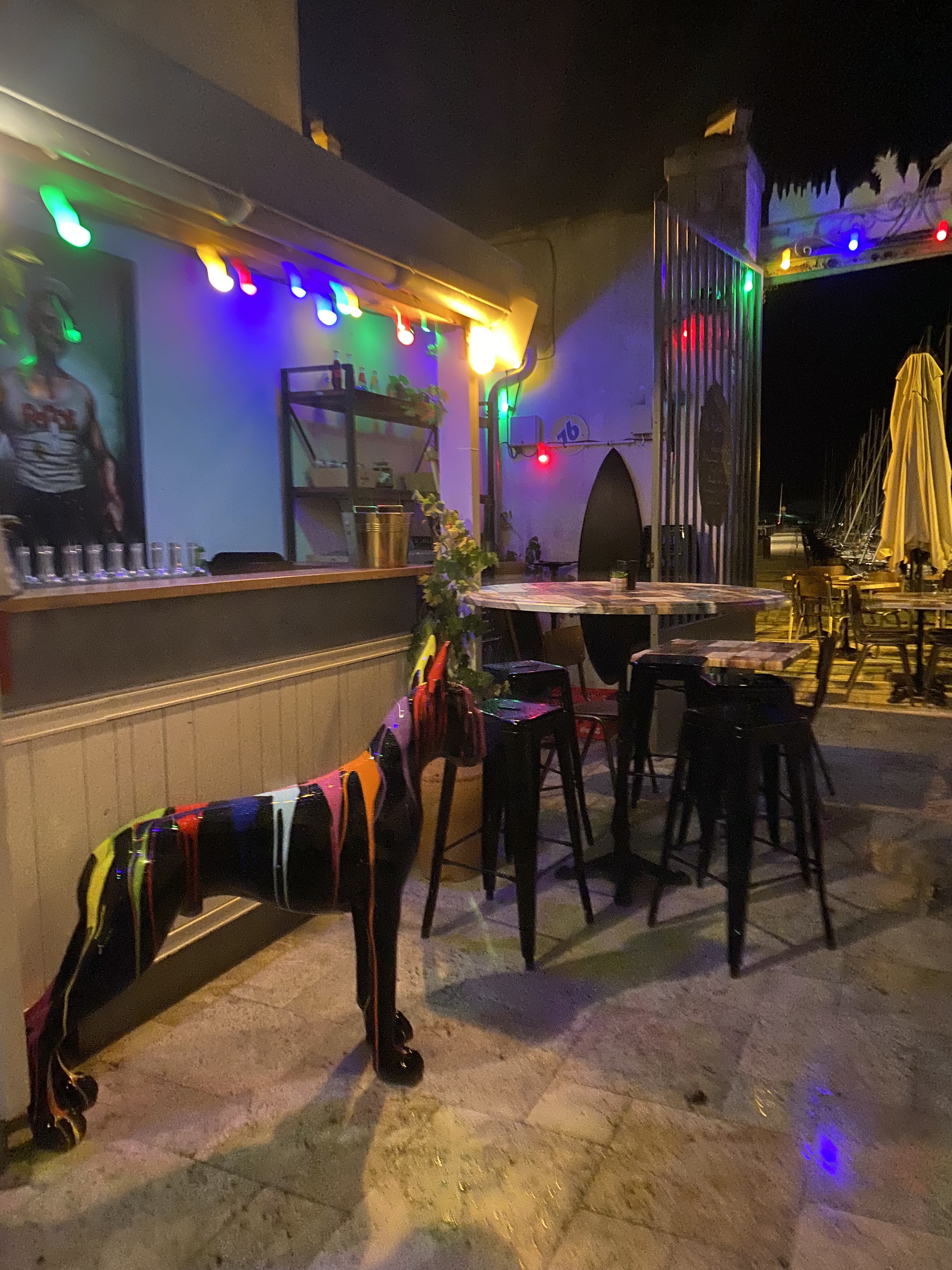 Nous y sommes allés juste avant Pâques et très calme. Un bar sympa et un accueil chaleureux. J'imagine que ça bouge en haute saison. Je n'ai pas mangé sur place. C'est juste sur le port et c'est charmant.