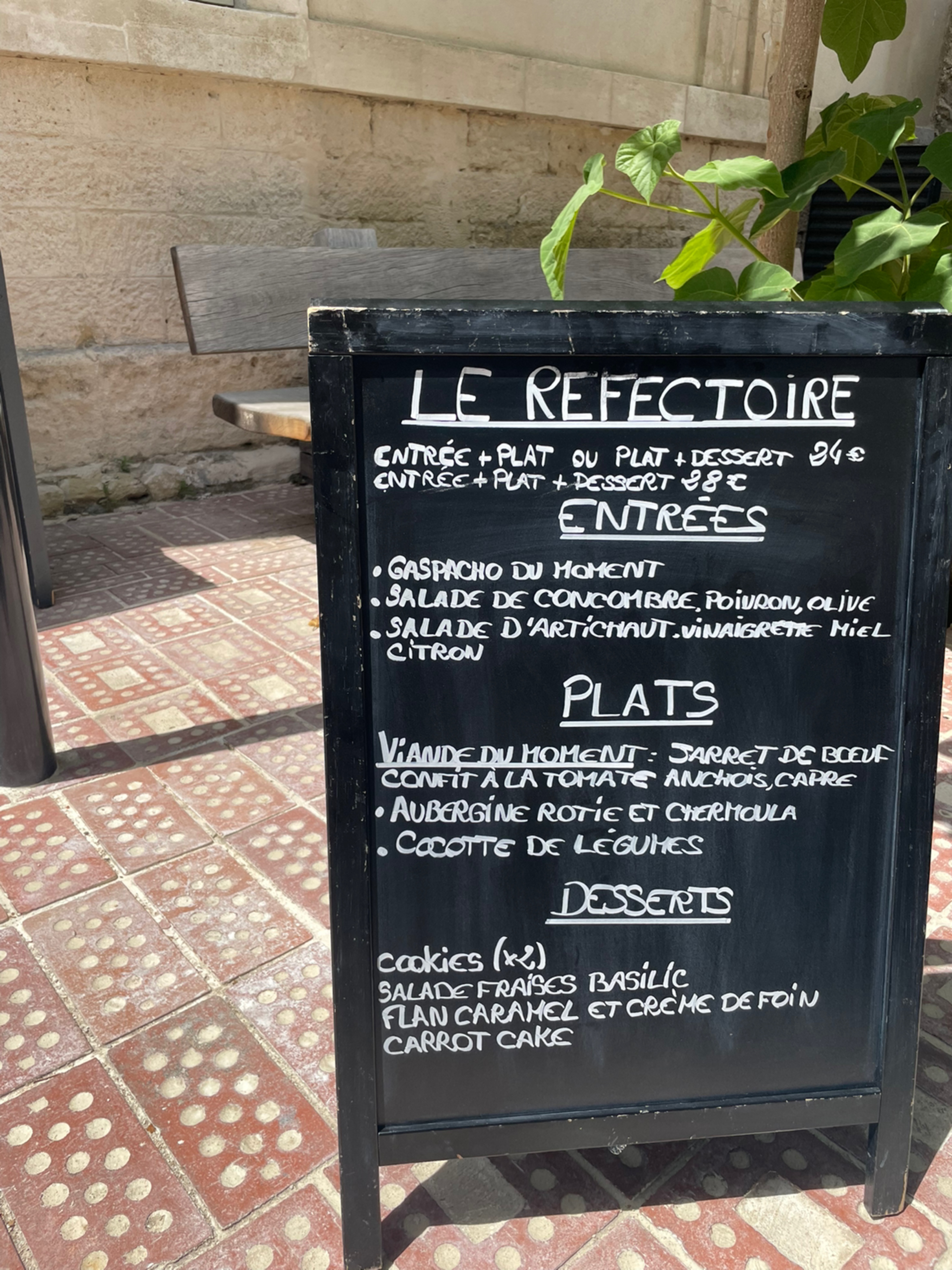 On est toujours bien accueilli au Réfectoire. Cuisine simple et fraîche qui change toutes les semaines, servie dans une vaisselle très colorée (j'adore). On peut manger sur la terrasse sous les arbres, ou quand il fait trop froid ou trop chaud, dans la grande salle du restaurant. La formule du plat est maligne : une base de riz, 2 légumes au choix 1 viande, on peut choisir avec ou sans.