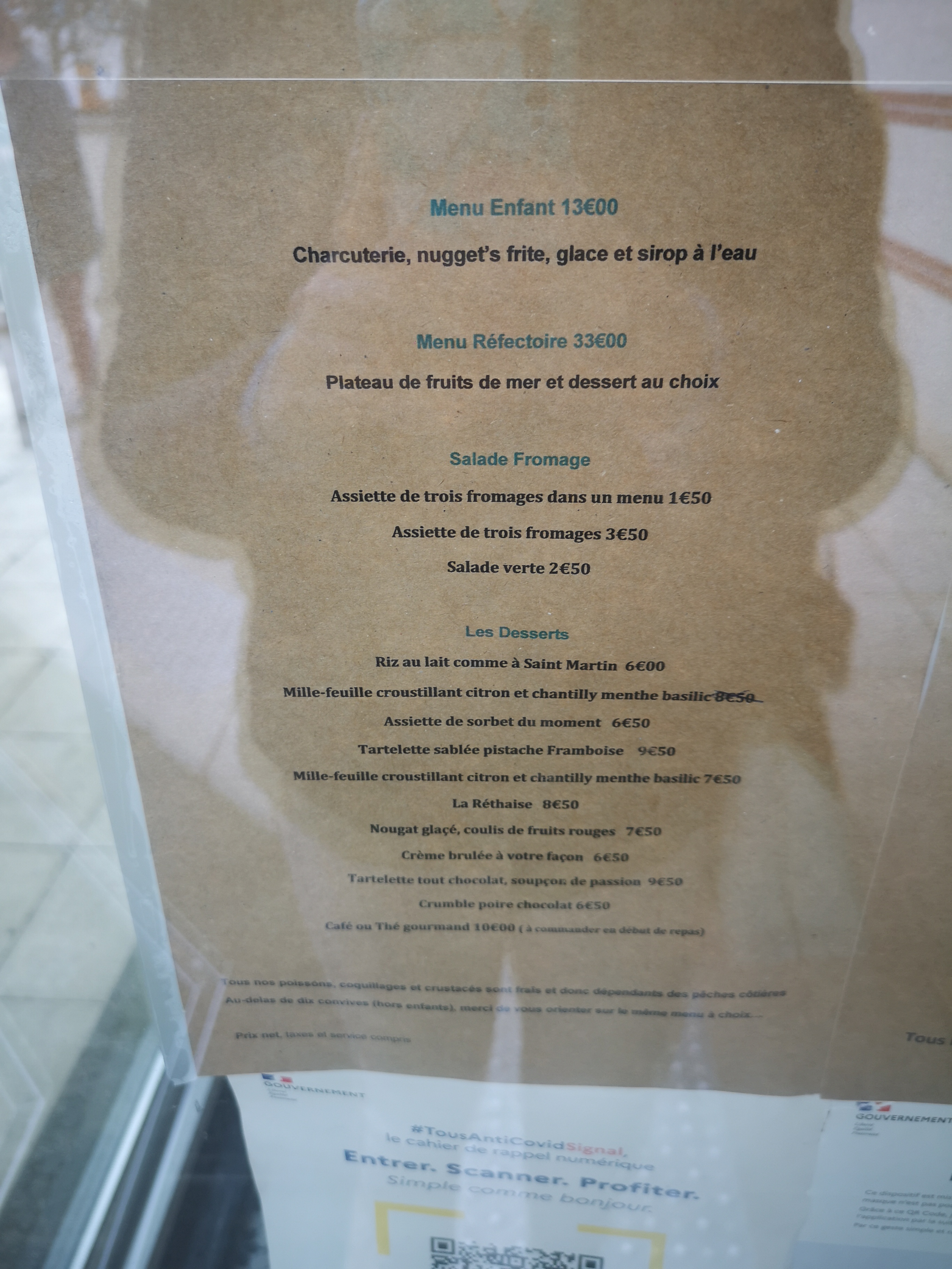 Prix du menu: Entrée, plat, dessert:15,50€ difficile de trouver moins cher et en plus c'est très bon. Le service est très correct et le cadre agréable. Je reviendrai.