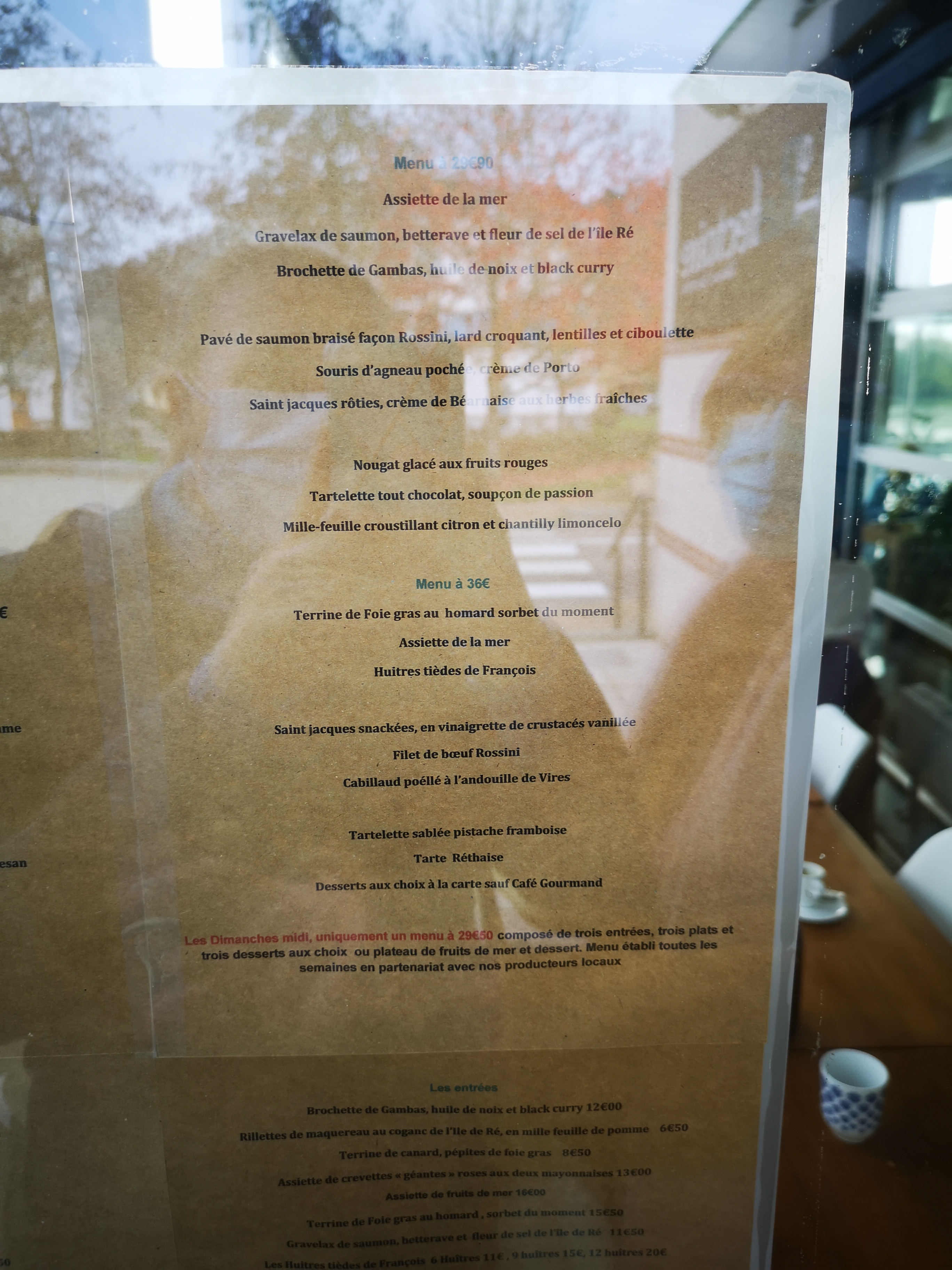 Nous nous sommes régalés. Produits provenant de l'île de Ré. Produits frais. Personnel très aimable. Si vous êtes 2, possibilité d'avoir une table avec vue sur la Seine... et s'il fait chaud terrasse à abritée ... Je recommande.