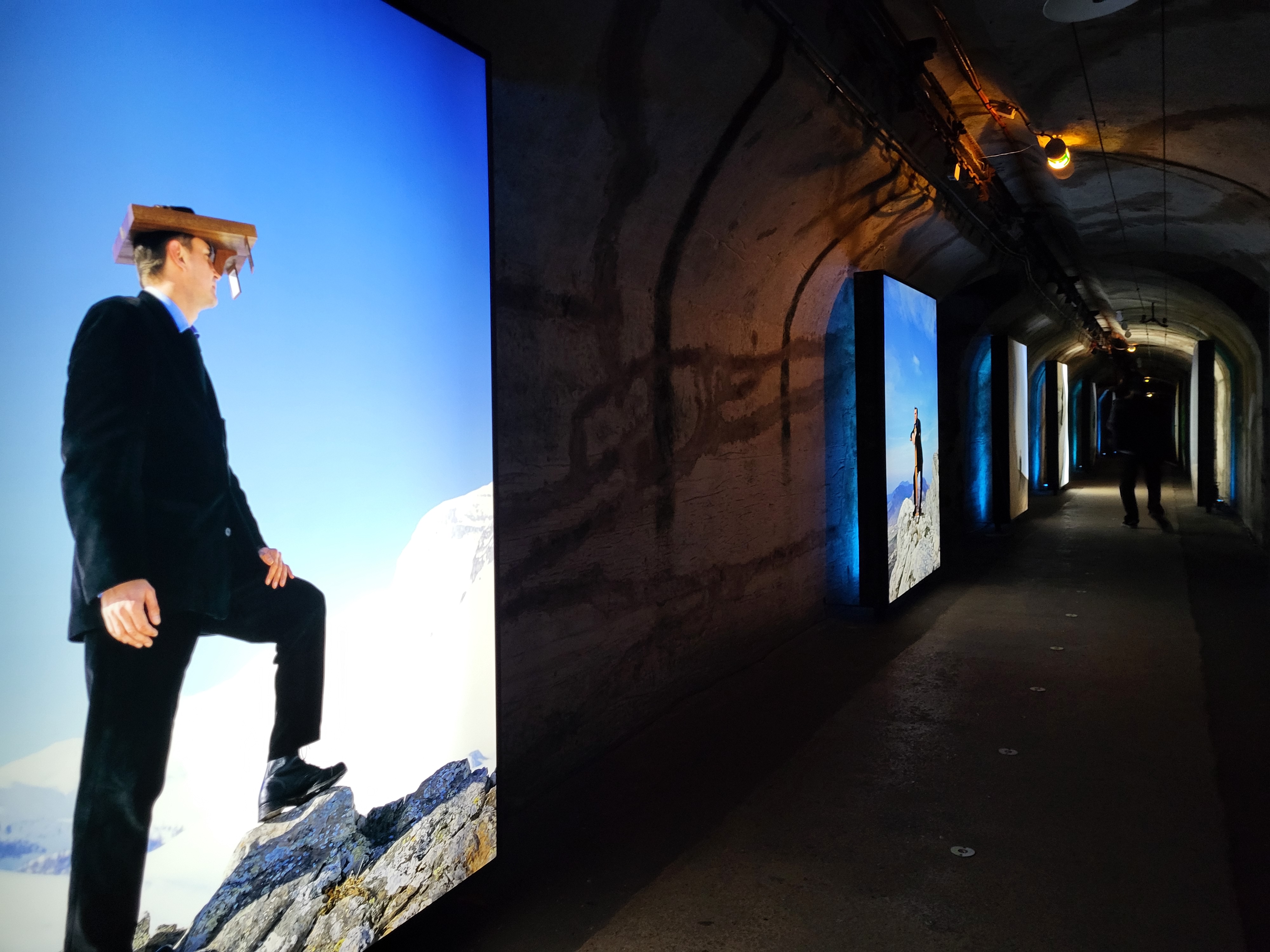 Belle exposition d'art en relief des années 1800 combinée à des installations d'art contemporain dans les caves historiques de Champagne Pommery.