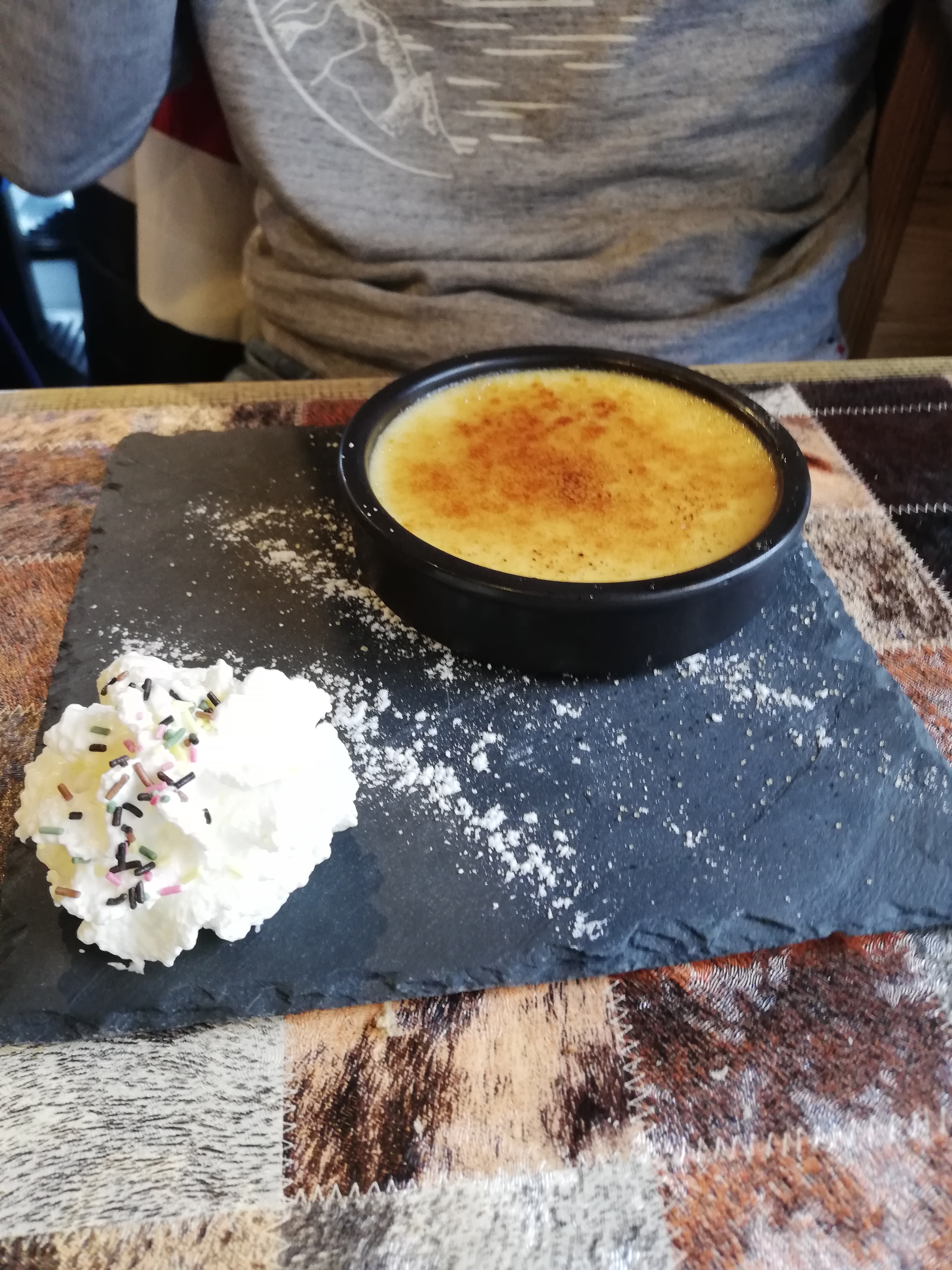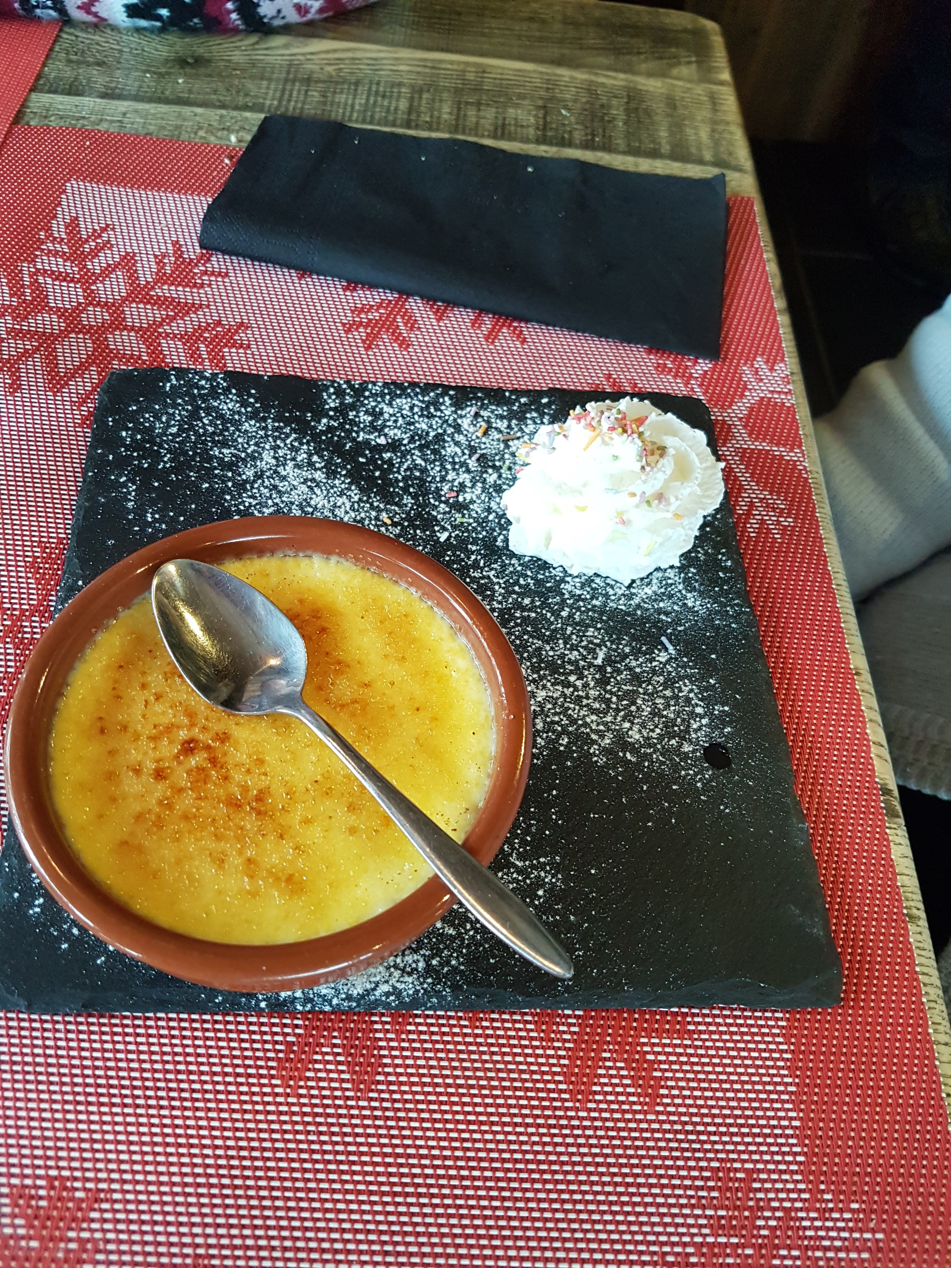 Dans un cadre très sympatique , nous avons mangé avec nos amis une délicieuse fondue bourguignone ainsi que des très bonnes escaloppes Savoyarde. Pour finir , le dessert choisi .... crèmes brulées maison absolument à recommander . JUILLET 2023 avec des amis , aussi une salade fraicheur extraordinaire...