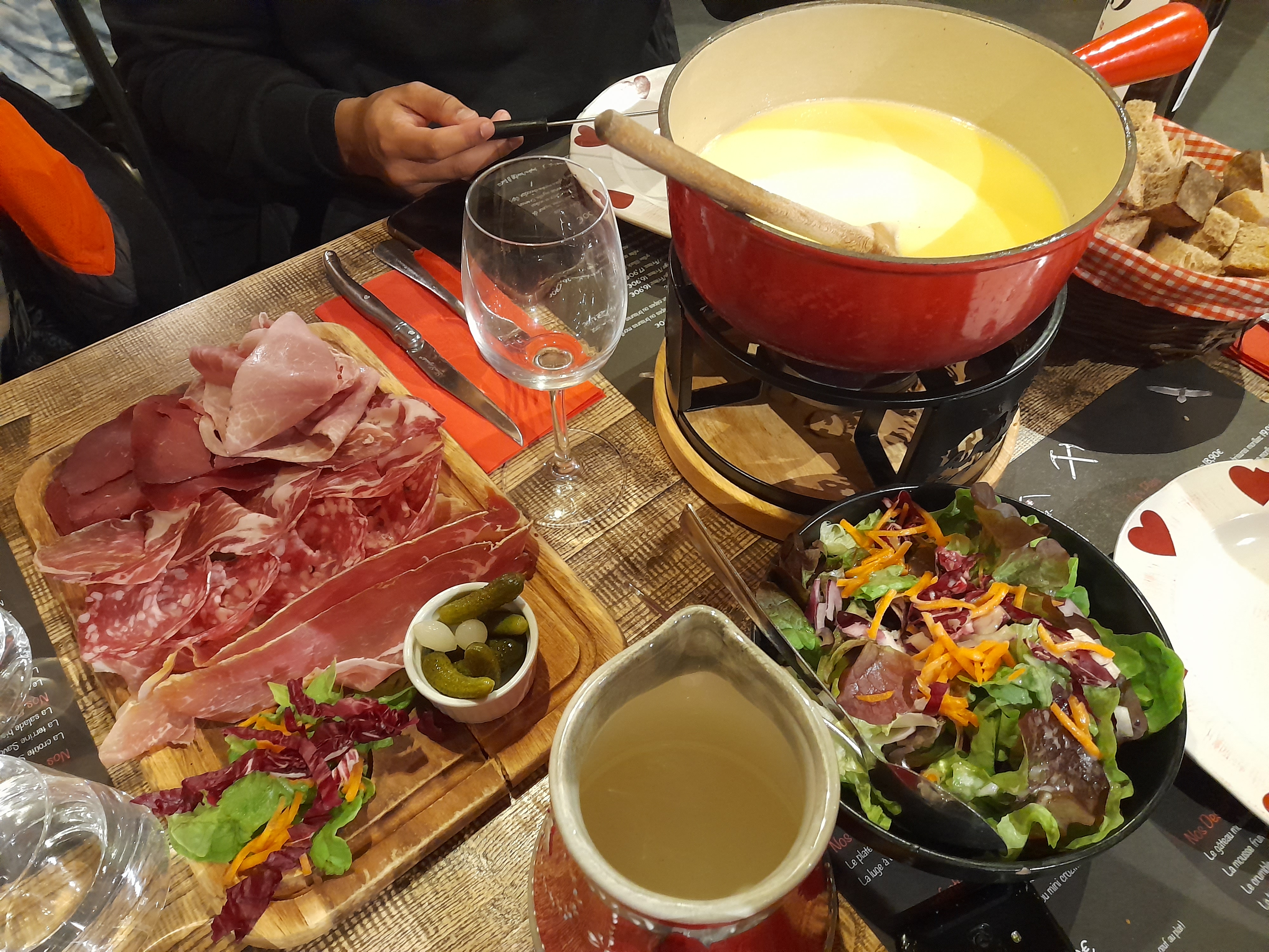 Une expérience fantastique. Un faible temps d'attente pour une qualité Hors du commun. Un fromage fondu à souhait, une bière fraîche aussi et une serveuse aux soins. D'autant plus que la serviette a bon gout. Petit bémol Cependant sur la quantité de charcuterie qui selon moi ne vaut pas le prix, dommage...