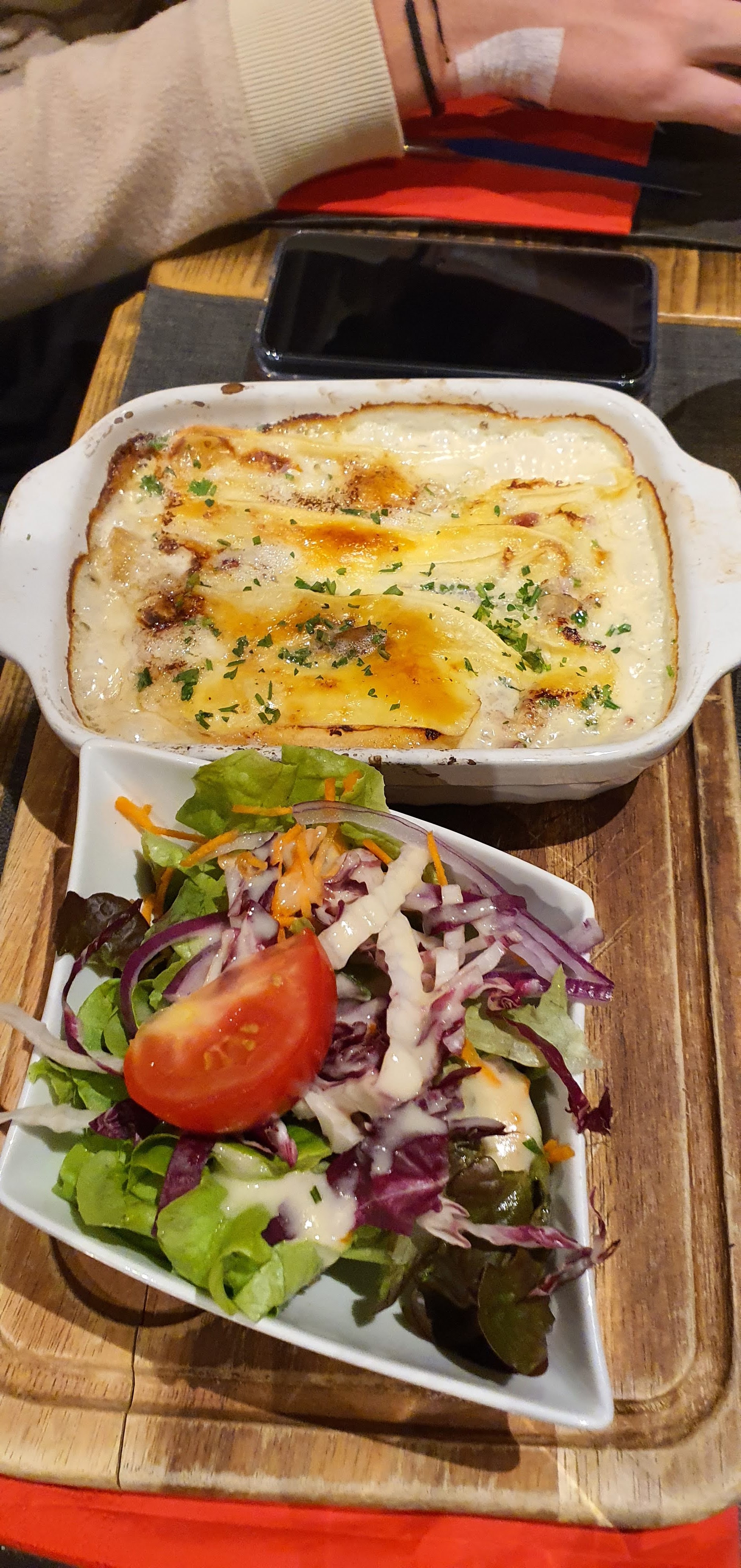 De manière générale, la nourriture montagnarde est très bonne, mais ce repas a surpassé mes attentes en tous points, le service est qualitatif, les repas sont très copieux. Micro bémol pour l’attente en début de repas, mais c’est vraiment pour chipoter. Pensez à réserver.