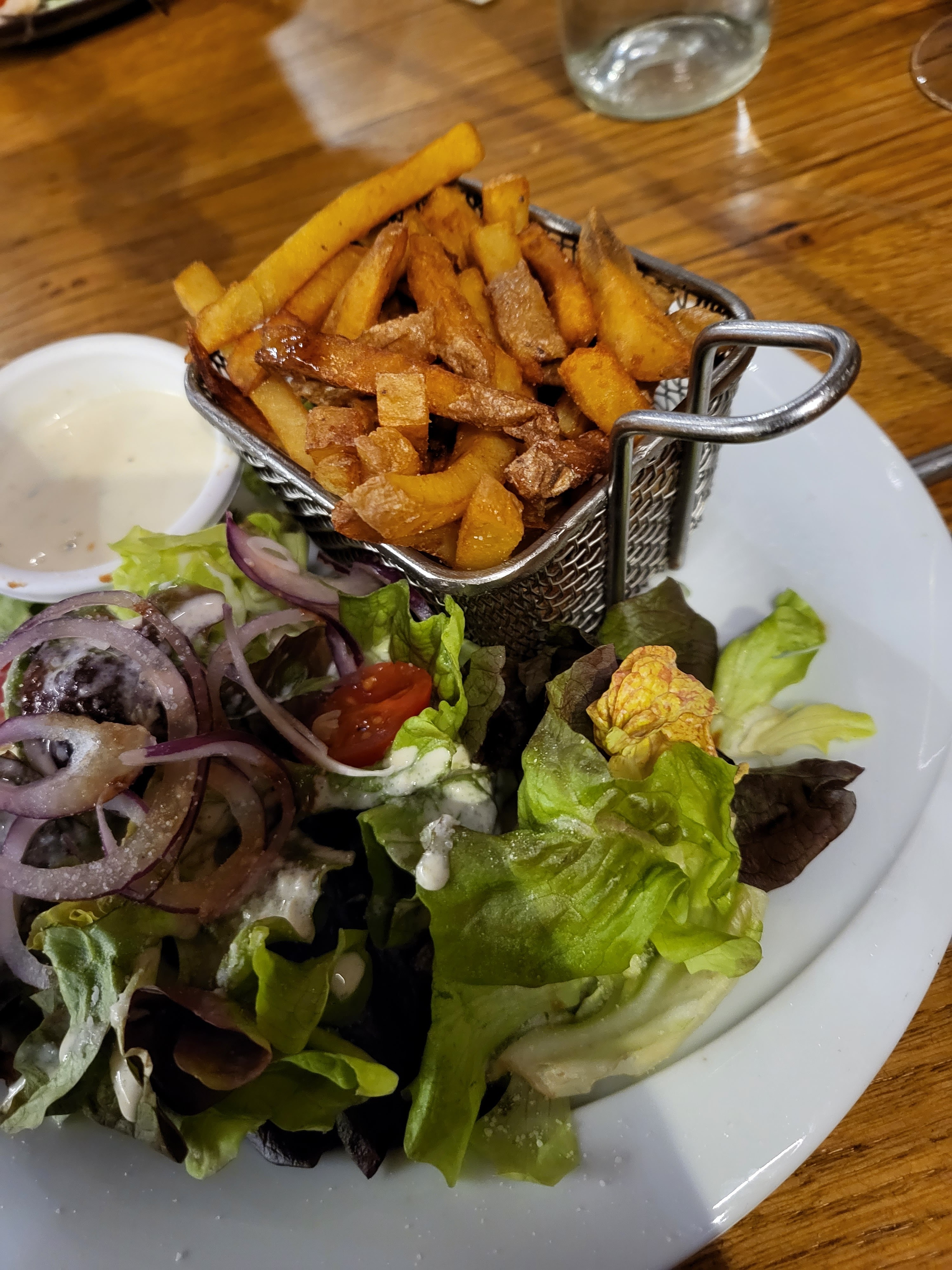 Ambiance sympa, portions en bonne quantité. Je recommande la raclette, pour un couple c’est largement suffisant, pour des gros mangeurs je ne sais pas …