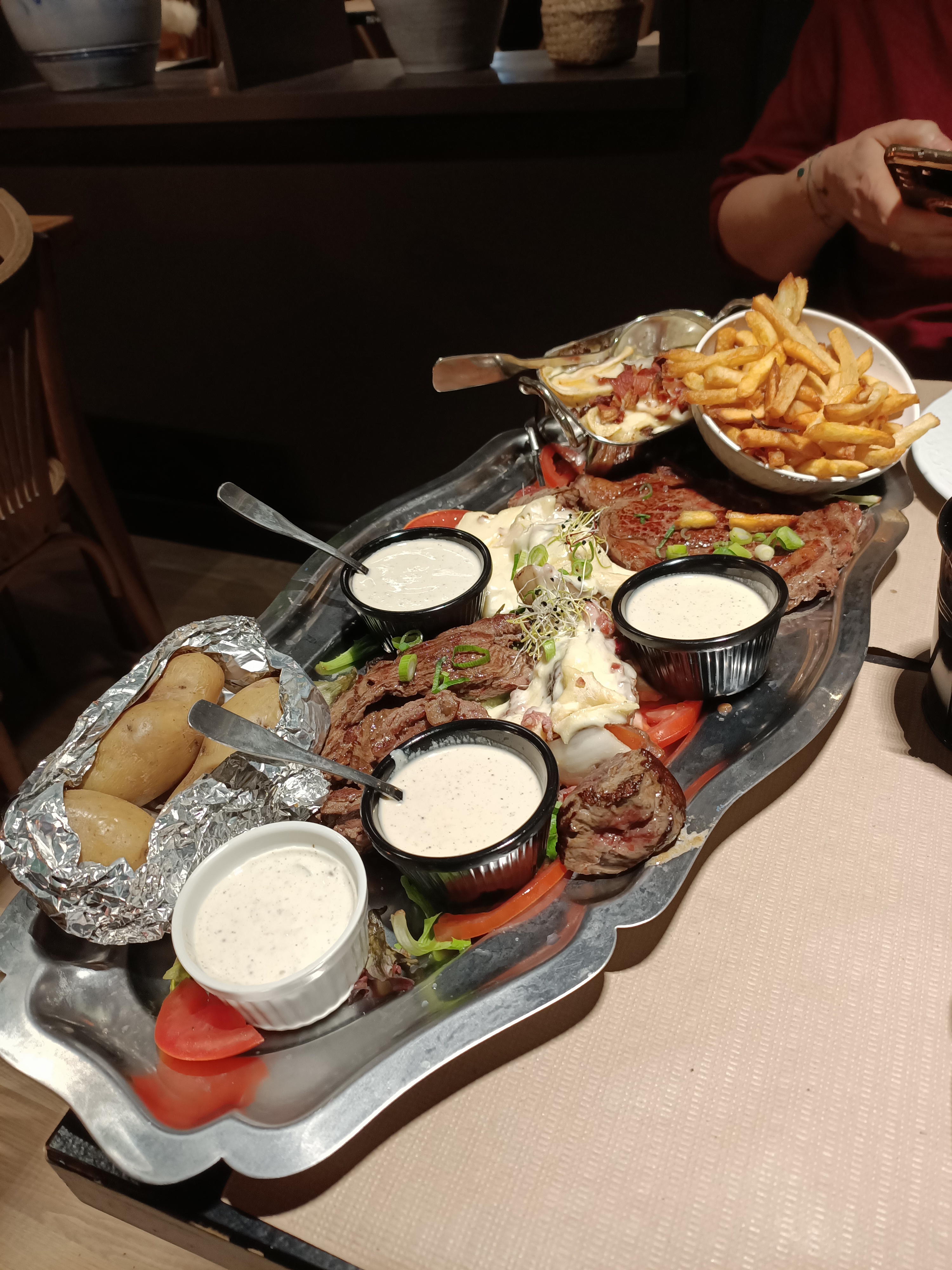 Première sortie dans ce restaurant. Plat très copieux. Dessert sans aucun intérêt. Dans l'ensemble cet établissement reste pour nous un endroit simple pour celui qui a très faim. Addition relativement excessive. Cela reste cher pour un burger ou une fondue. Nous avons tester, mais cela sera la dernière fois.
