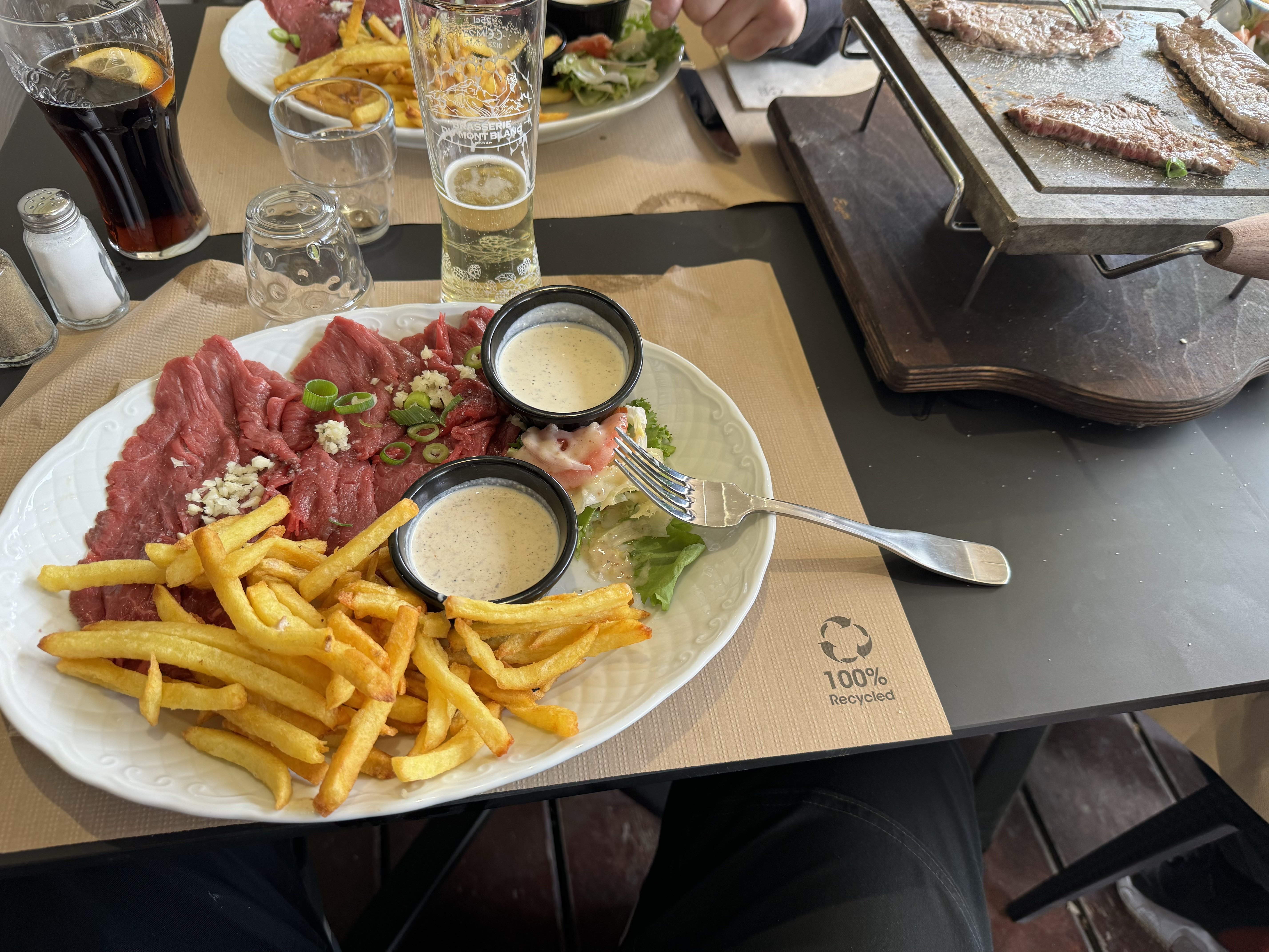 Très bon rapport qualité prix. En effet, les prix semblent élevés mais les assiettes et plateaux sont très très copieux. Papa avait pris une salade vosgienne XL et il a mis près d 1 h à la manger....il y en avait pour 3 ou 4. Le plateau du boucher pour 2 avec 800gr de rumsteck était au top. Les sauces sont très bonnes. Les frites sont maison. Le hamburger savoyard était énorme et succulent ! Allez-y les yeux fermés !