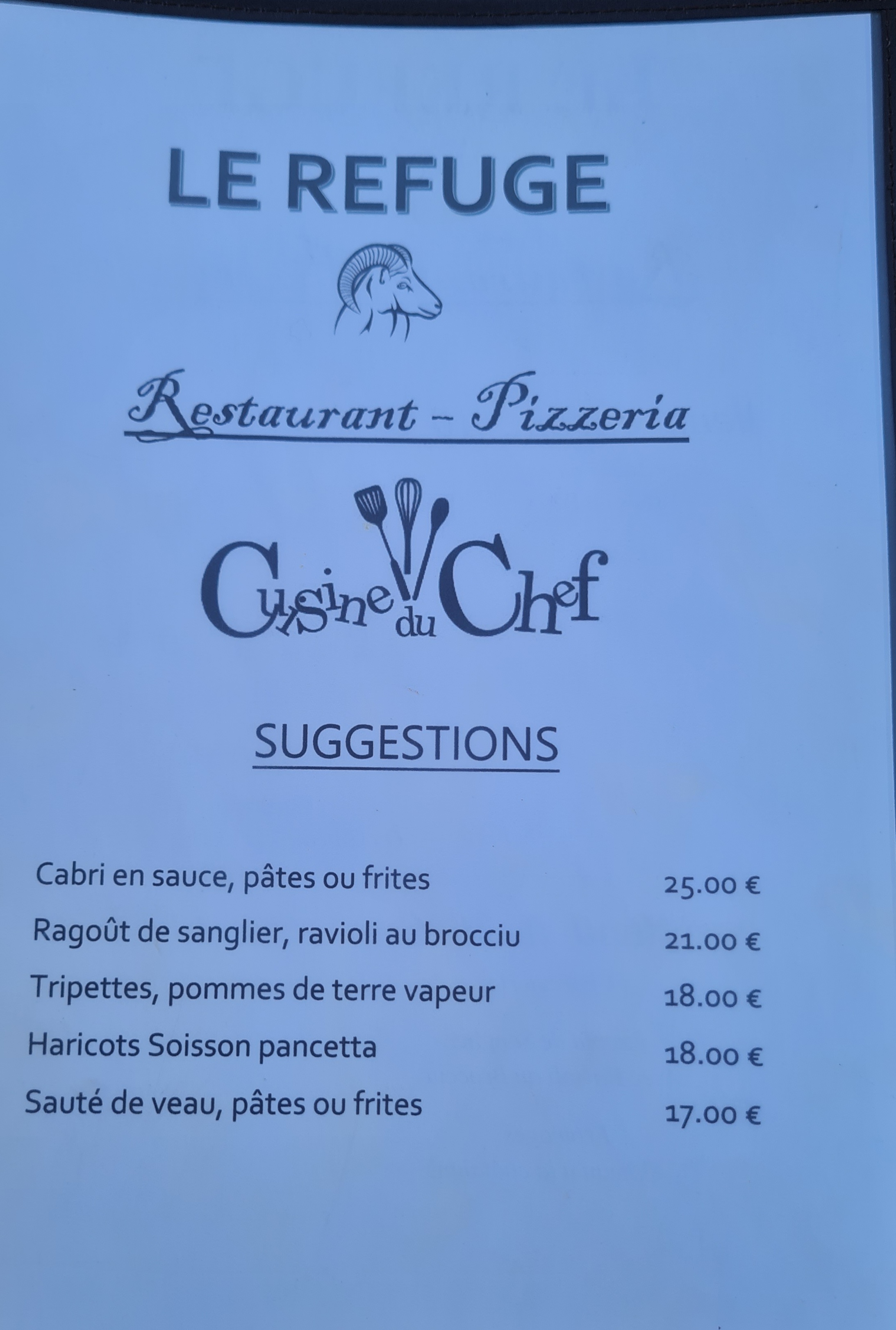 Envie de manger Corse?Le Refuge, la meilleure adresse. Une cuisine sincère, des recettes que le patron tient de sa mère. Pour le choix des plats faites confiance à la serveuse: haricots soisson pancetta ou tripettes pommes de terre vapeur. Succulent.Prix doux. Ambiance familiale