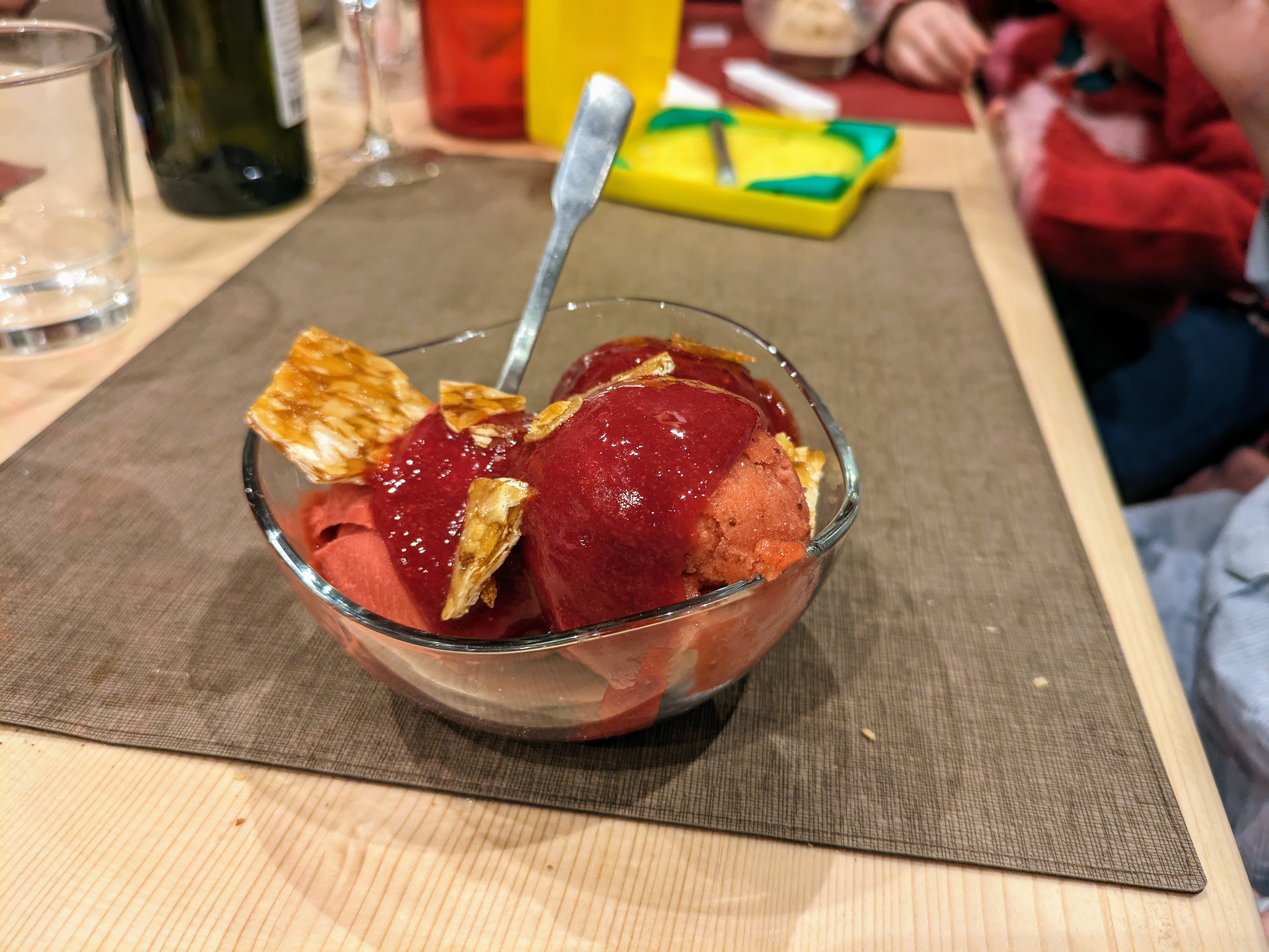 Accueil tout sourire les deux fois où nous y avons mangé. Repas excellents , portions généreuses, je recommande les joues de porc au miel et thym , les ravioles à l'échalote, et la tarte aux noix. Le jus de fraise artisanal est à tomber. Pas facile de repartir skier après tout ça, ! Merci pour tout !