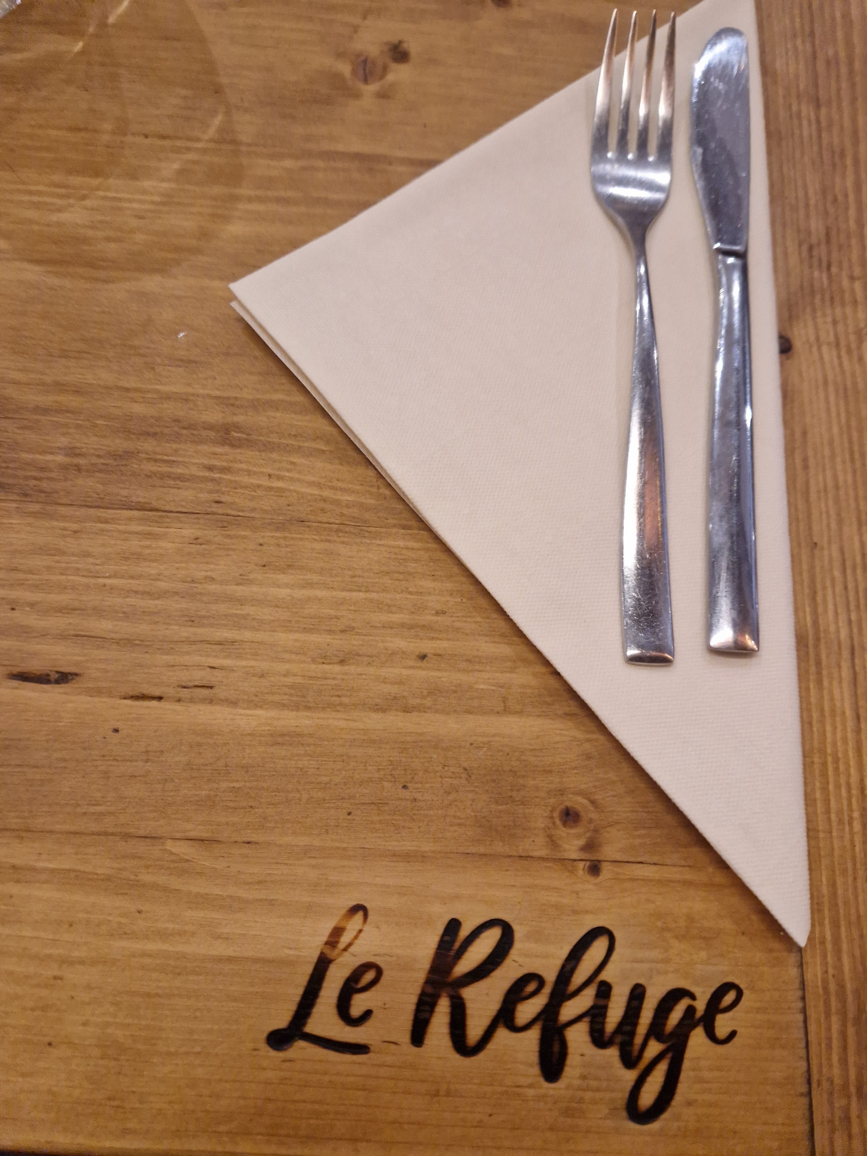 Dîner ce soir au restaurant Le Refuge , cadre magnifique, avec une superbe décoration. Nous avons pris une fondue avec charcuterie et pommes de terre grenaille : la meilleure de notre vie vraiment !! Un pur régal ! Tout était parfait ! Même la vaisselle est magnifique ! Les gérants sont extraordinaires et mettent tout de suite à l'aise, nous n'avions plus envie de partir de cet endroit ! Merci merci pour tout , nous avons adoré votre restaurant !!