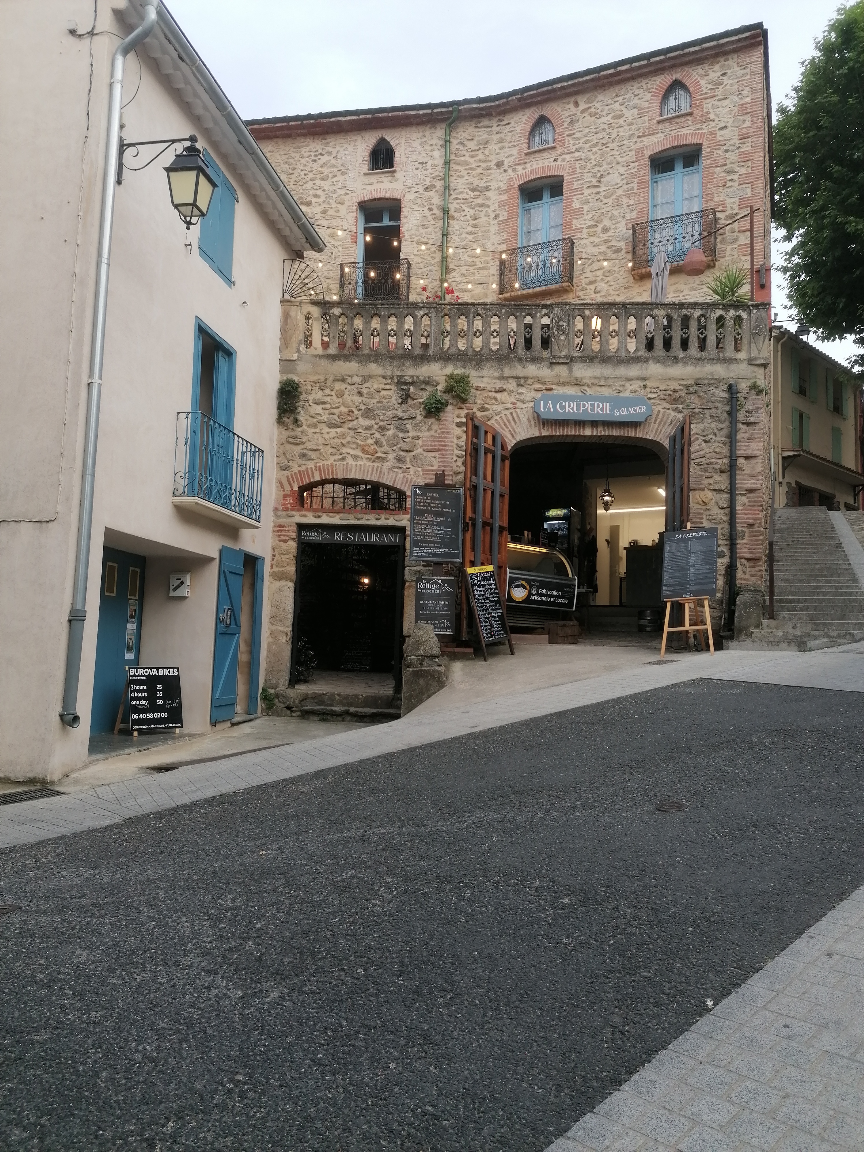 On s'y est arrêté pour manger des glaces, qui étaient délicieuses (et locales!). Le bâtiment communique sur les deux rues, avec des terrasses de tous les côtés (magnifique vue sur les Albères). Ambiance très agréable, personnel accueillant, je recommande ++ Dommage qu'on ne puisse pas donner une note à l'ensemble du village, qui est tout aussi charmant !