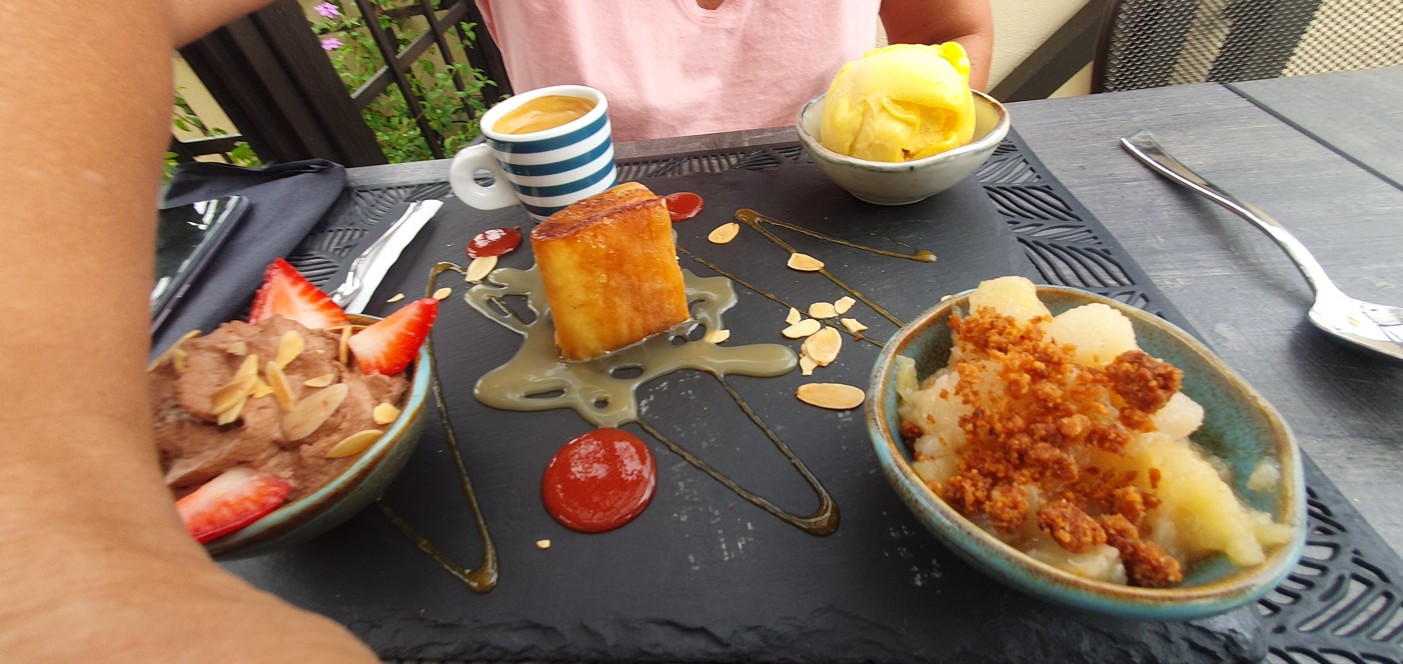 Découverte au hasard des promenades. Très bel endroit ( bravo la déclivité). Plats originaux et délicieux. Personnel ayant beaucoup d'humour et redoutablement efficace. Que Du bonheur.. merci a eux.