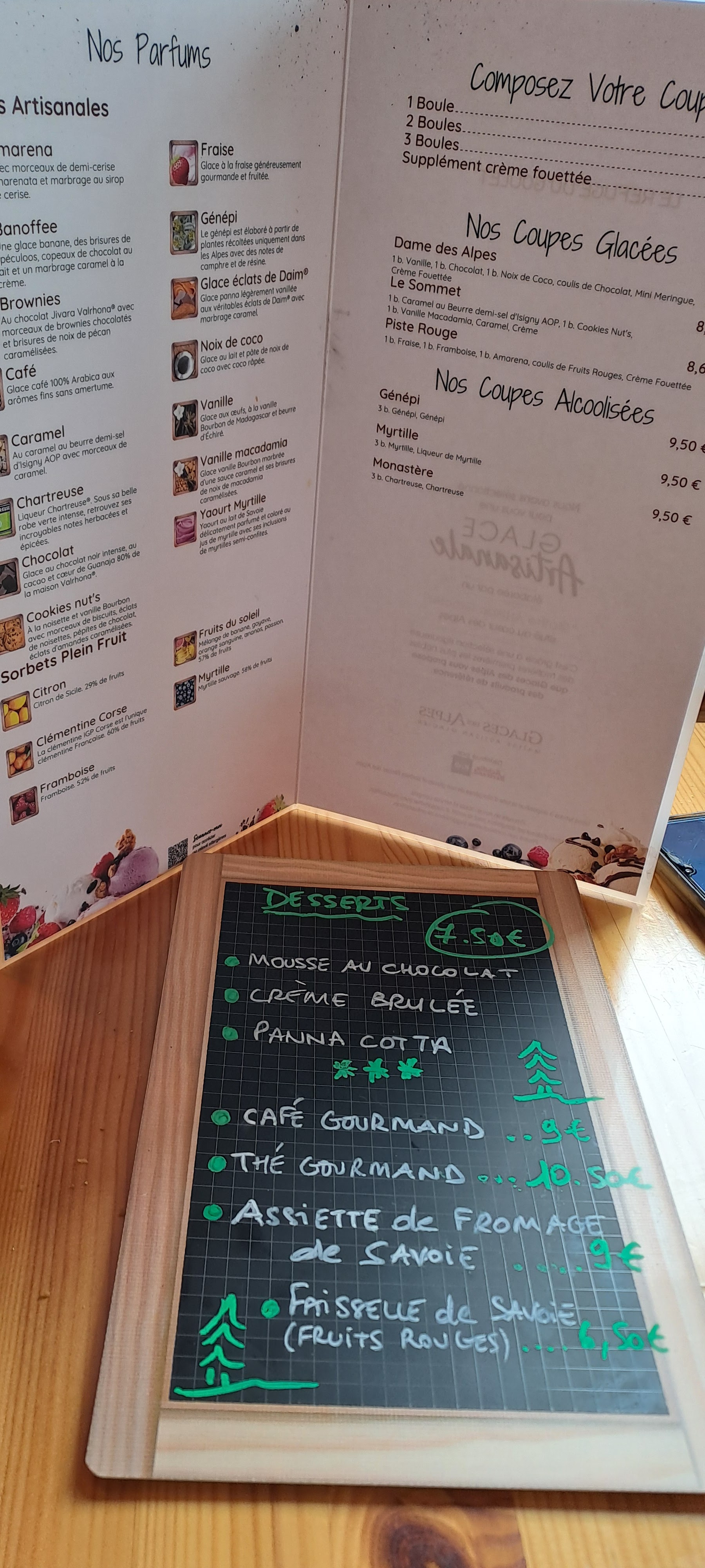 Excellent. Que des produits frais et du terroir savoyard.Très bonnes glaces aux parfums inédits. Serveur antoine très gentil et à notre écoute. La patronne Nadia super gentille et charmante. Le seul bémol: l'attente mais largement compensé par la qualité des produits. Je recommande le cidre savoyard. L'andouillette savoyarde et ses pommes frites maison. Coupe de glace le mont blanc ou bien le sommet 🖒❤❤❤❤ J'y retournerai à coup sûre pour goûter d'autres spécialités : ex : les diots.