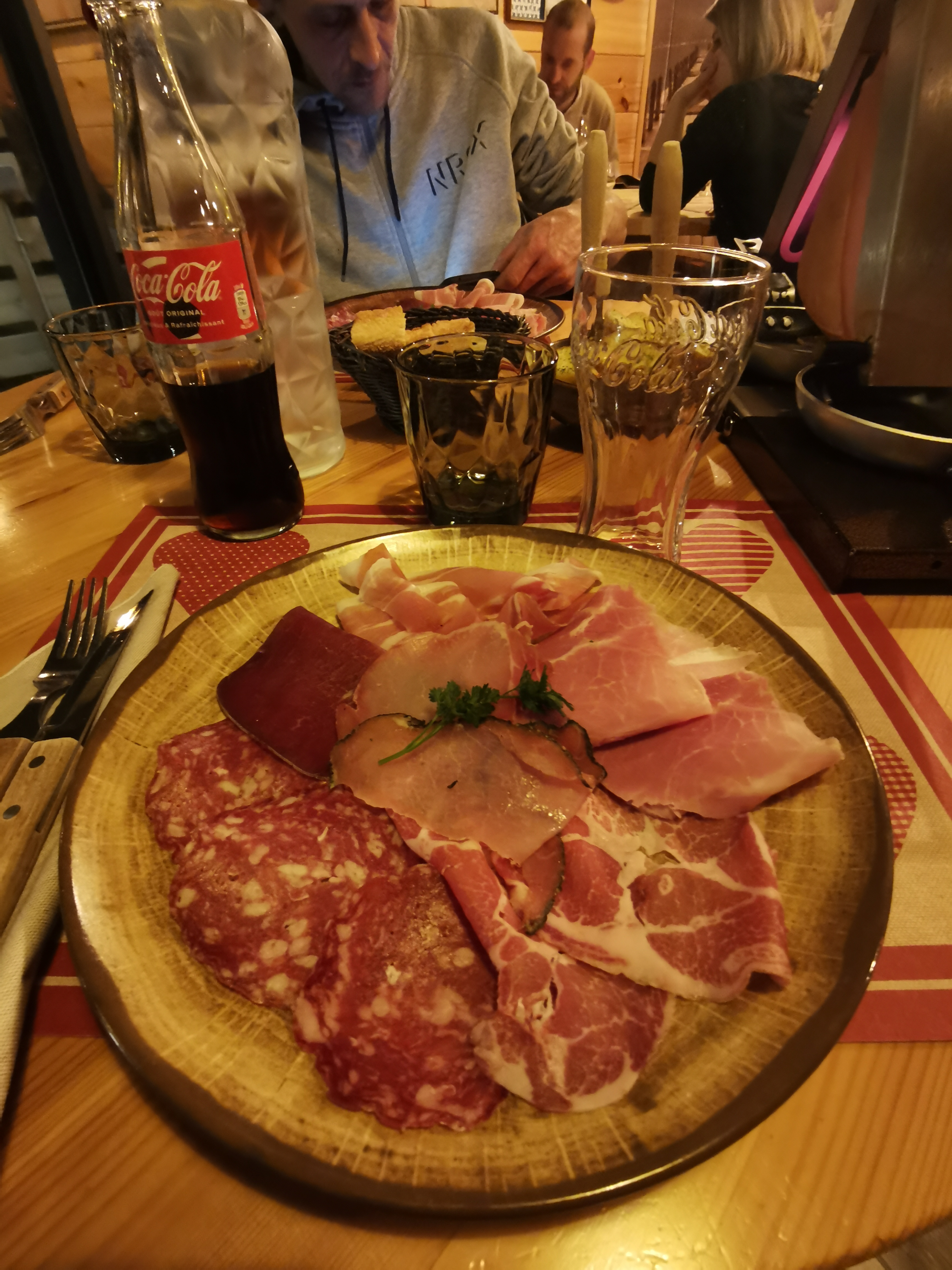 Nous avons diné dans une ambiance chaleureuse et cosy, intérieur bois décoration chalet de montagne. Raclette fromage fumé pour 3, jolie présentation, plat copieux. Les tables sont bien espacées . Personnel agréable et souriant.