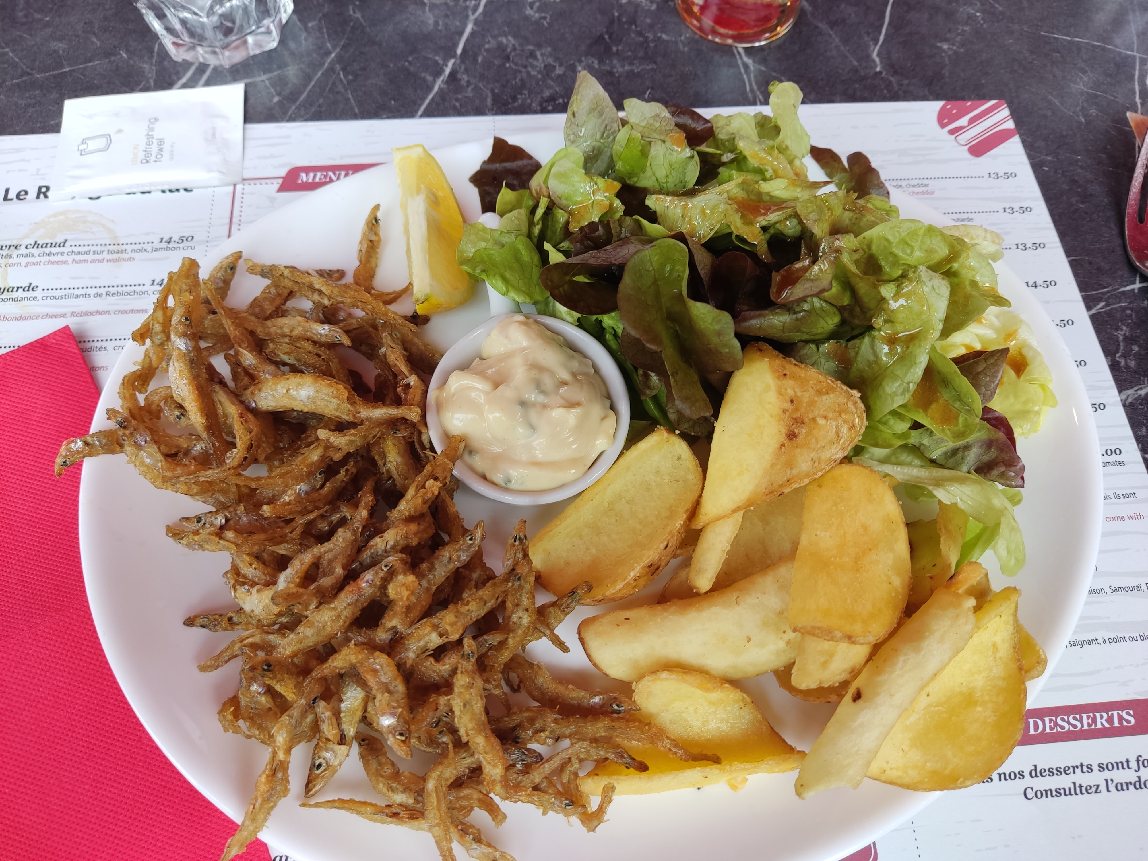 Petite salle de restaurant sympa, serveuse gentille (un peu stressée), cuisine ok, sauf la sauce à salade qui était fade.