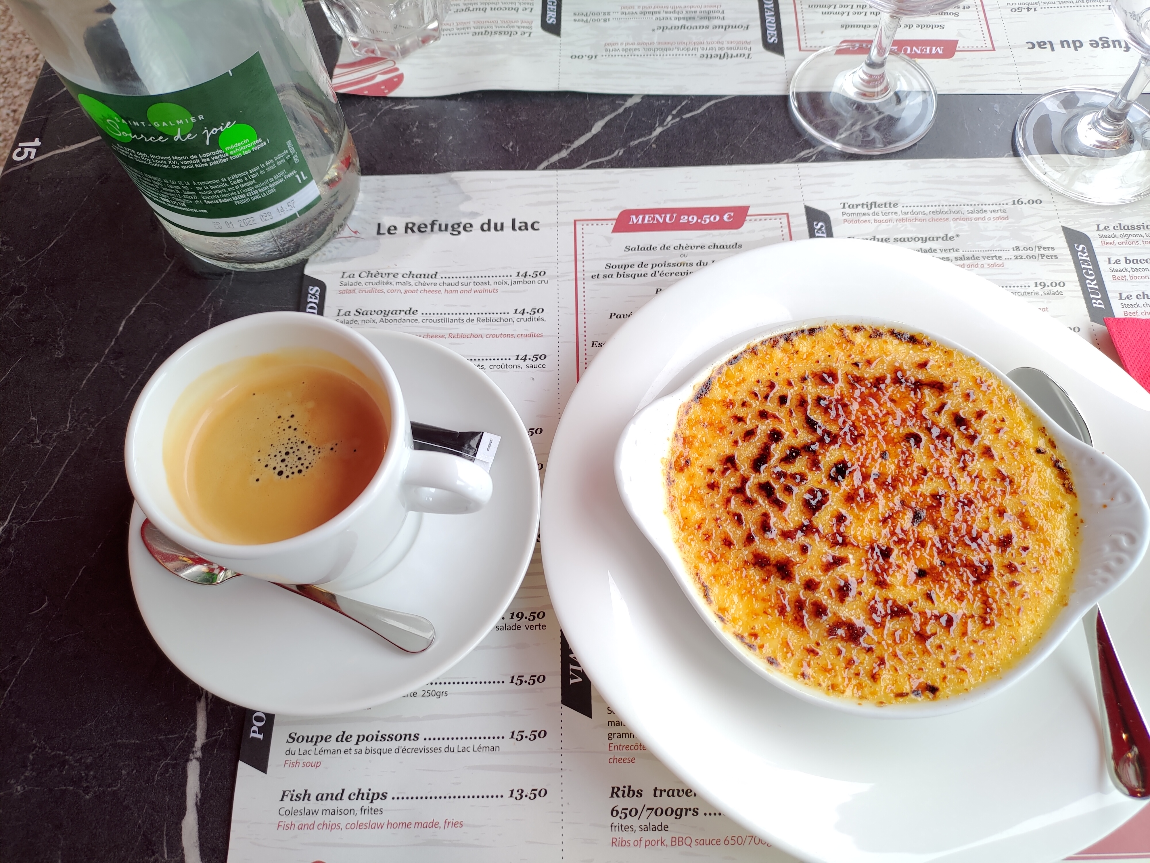 Superbe adresse un accueil chaleureux juste en face du lac un patron sympathique avec un petit jeune qui nous a servi et de bon conseil . Une adresse à ne pas manquer rapport qualité prix excellent On s’est régalé On y retournera avec plaisir sans hésitation