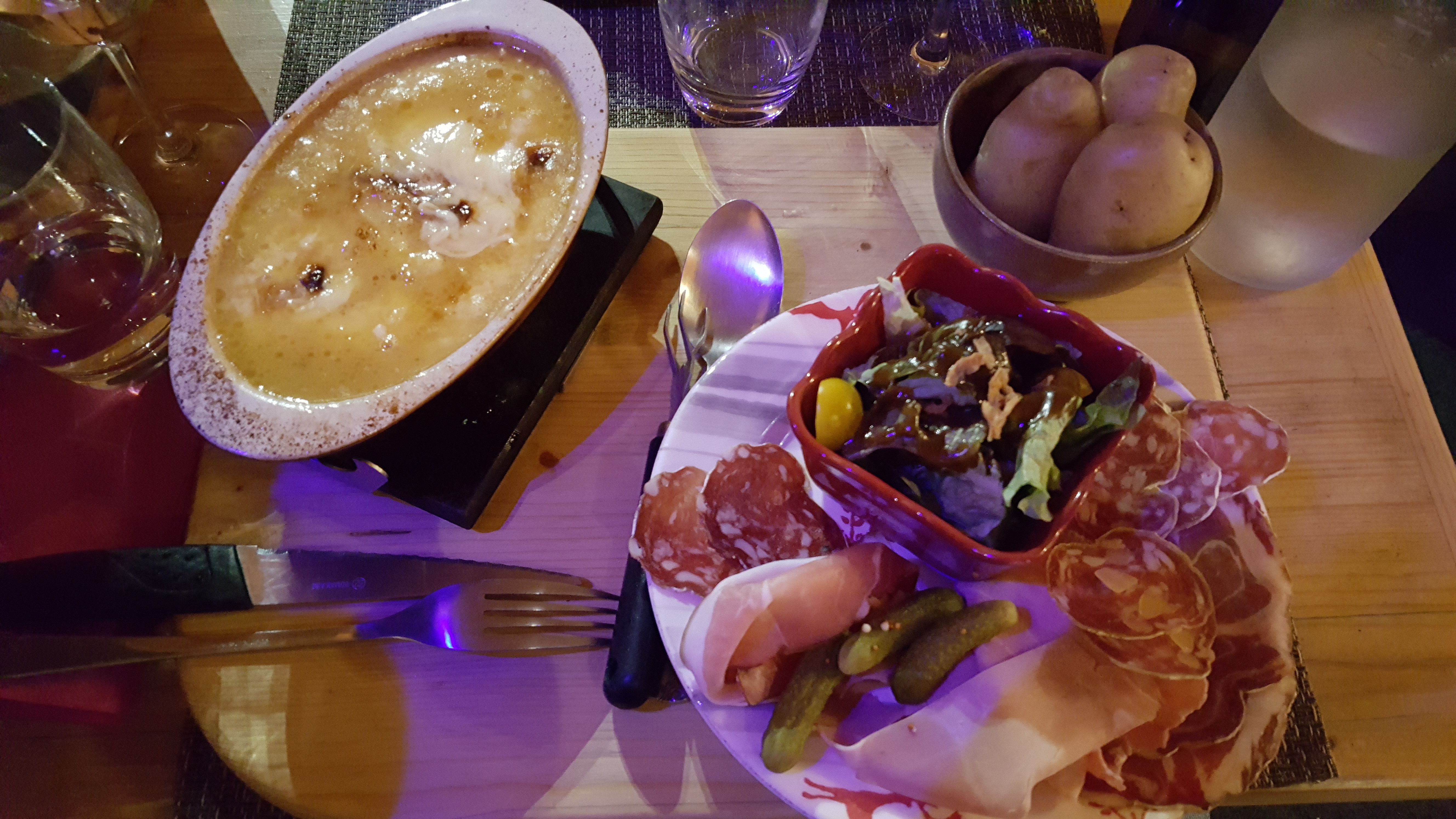 La nourriture était bonne. Nous avons particulièrement apprécié la Matouille (plat spécial à base de Tome) qui était nouvelle pour nous. Il peut être servi avec des légumes ou de la charcuterie. Vous devriez réserver à l'avance. Nous avons essayé une autre nuit juste sans rendez-vous et c'était complet. Même panneau à l'entrée lorsque nous y sommes allés. Le personnel qui s'est occupé de nous était un peu froid.