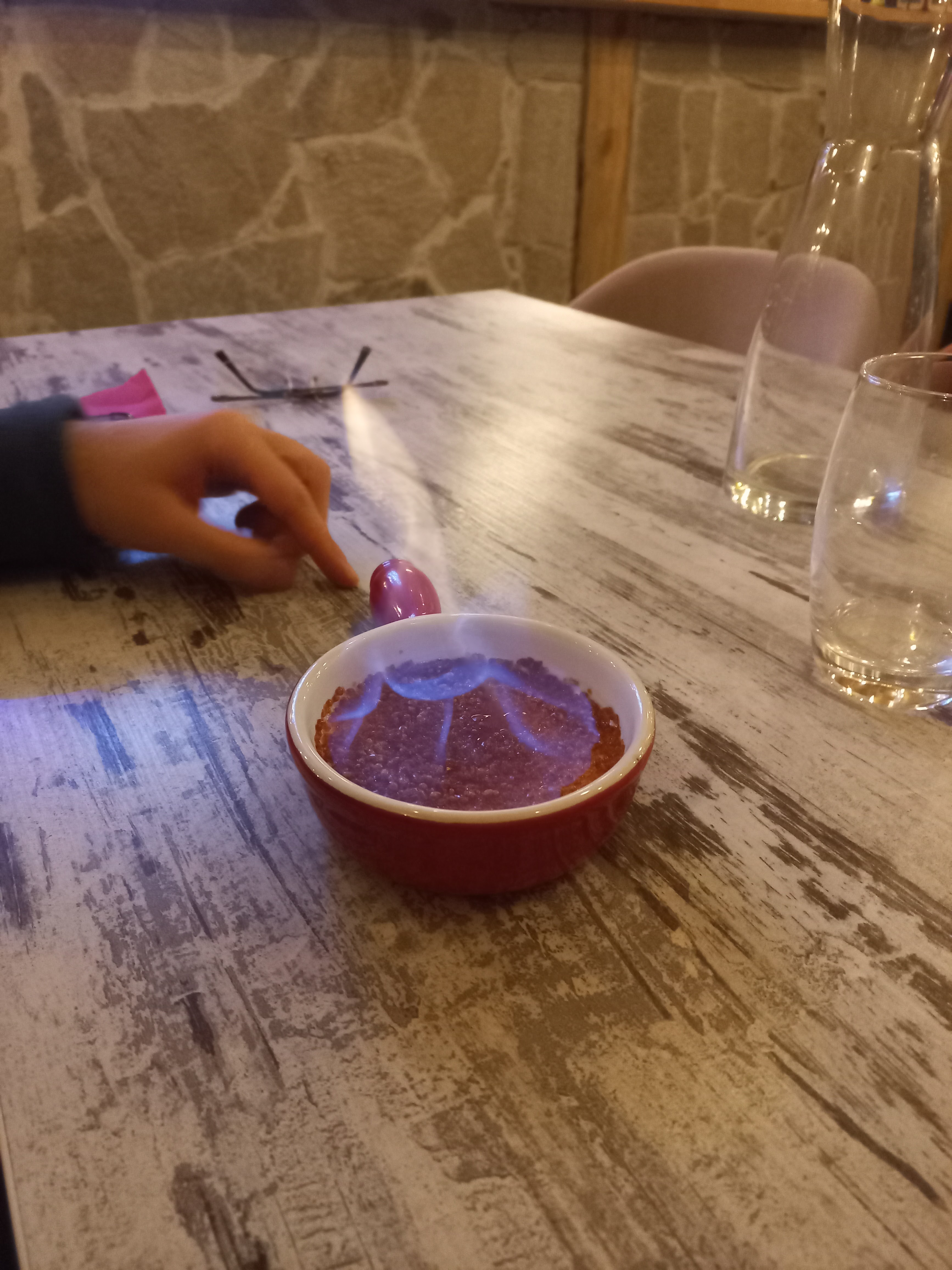 Cuisine de montagne que l'on retrouve un peu partout, mise à part les cuisses de grenouilles et escargots à la carte. Attention cependant si vous y allez avec des enfants qui ont peu d'appétit, ne comptez pas séparer un plat pour deux personnes, la place assise vous sera facturée 12€. Donc obligation de prendre un plat qui au final ira presque entièrement à la poubelle. Les desserts n'étaient pas top, en l'occurrence surtout le feuilleté profiterole. Et pour info les desserts enfants qui ne sont pas marqués sur la carte sont: pompote, Yop à la fraise ou glace haribo. Bref je trouve dommage d'instaurer de tel règle au vu de 4 apéritif pris et entrée plat dessert sur trois personnes sur 4. Vous ne cherchez pas à faire revenir la clientèle de passage.