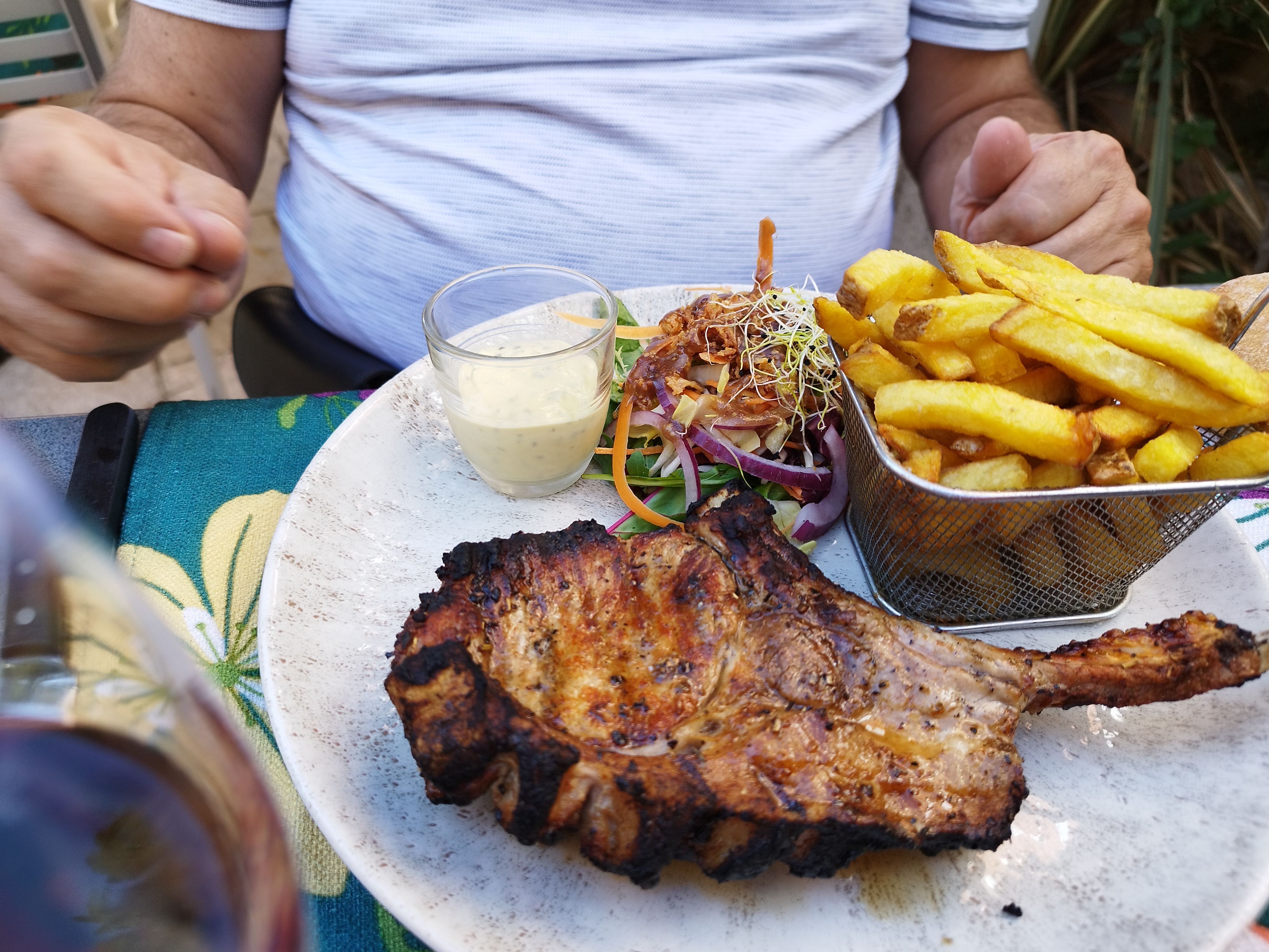 Ce fut délicieux. Personnel très gentil et serviable, les repas excellents : côte de bœuf et daurade, toutes deux cuites au feu de bois (cuisson très bien maîtrisée), et hamburger au fromage de chèvre frais à tomber. Frites fraîches excellentes également. Un sans faute!