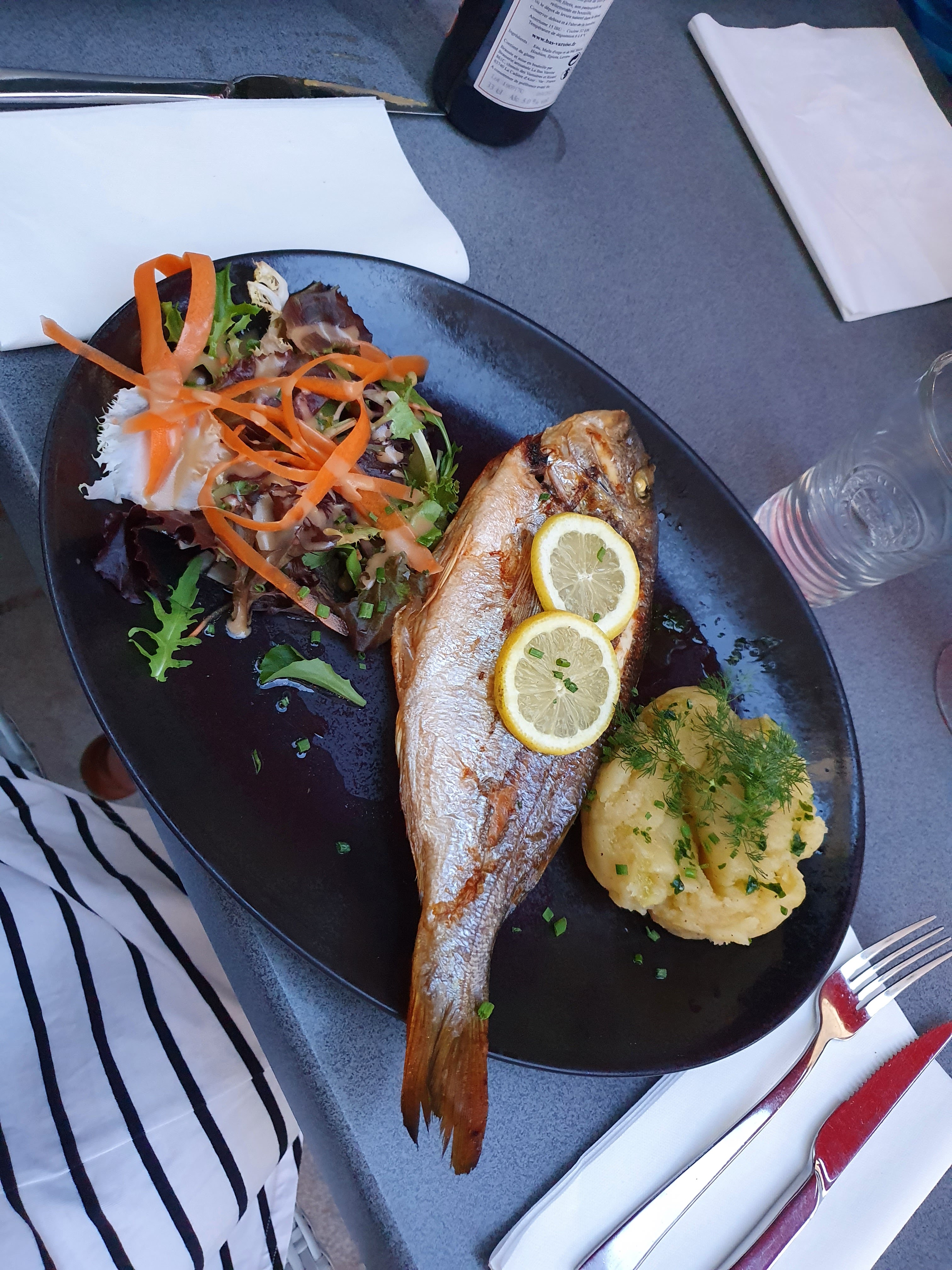 La dorade, (cuite au feu de bois), était excellente, ainsi que son accompagnement ! Et le service impeccable. Que demander de plus ? 😊