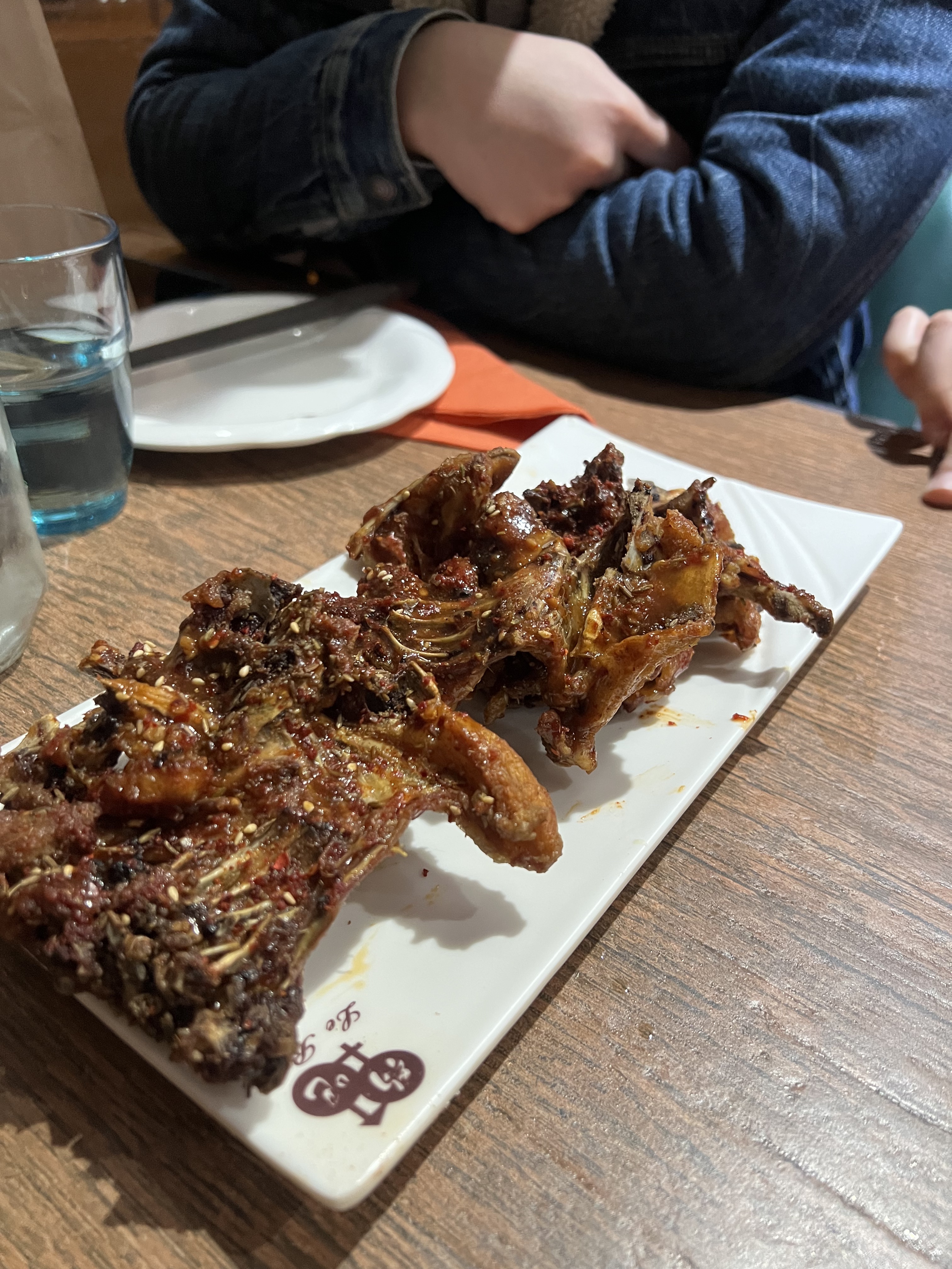Super brochette d'agneau! Je trouve que le prix des brochettes d'agneau et du kkwabarou est raisonnable, et on peut manger à partir de 18h.