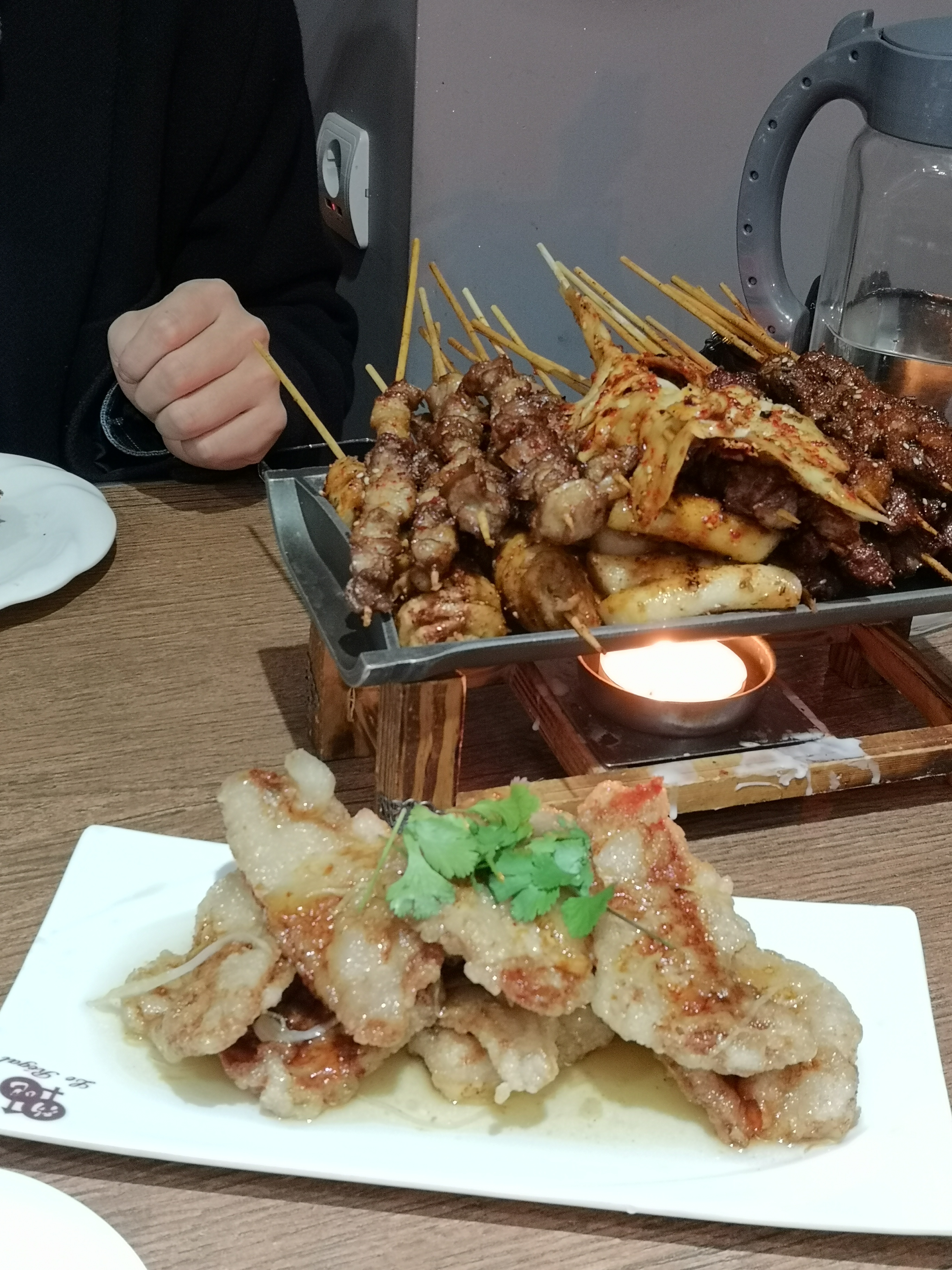 Je mets 5 étoiles pour ce restaurant car j’ai eu une inoubliable expérience avec amis pendant la fête de la lune. Tout d’abord les plats ici ainsi que les brochettes sont cuisinés avec une méthode Dongbei(Nord-est de la Chine). Comme je suis né dans cette région, cela me convient parfaitement. Je vous mets quelques photos des brochettes que nous avons commandé. Surtout elles sont très variées: par exemple les brochettes du poulet, du bœuf, de l’agneau, de la cœur de poulet, du saint Jacques....à la fin concernant le dessert il faut sûrement goûter leur gâteau de lune qui est fait à la maison, au-delà de votre imagination!!!