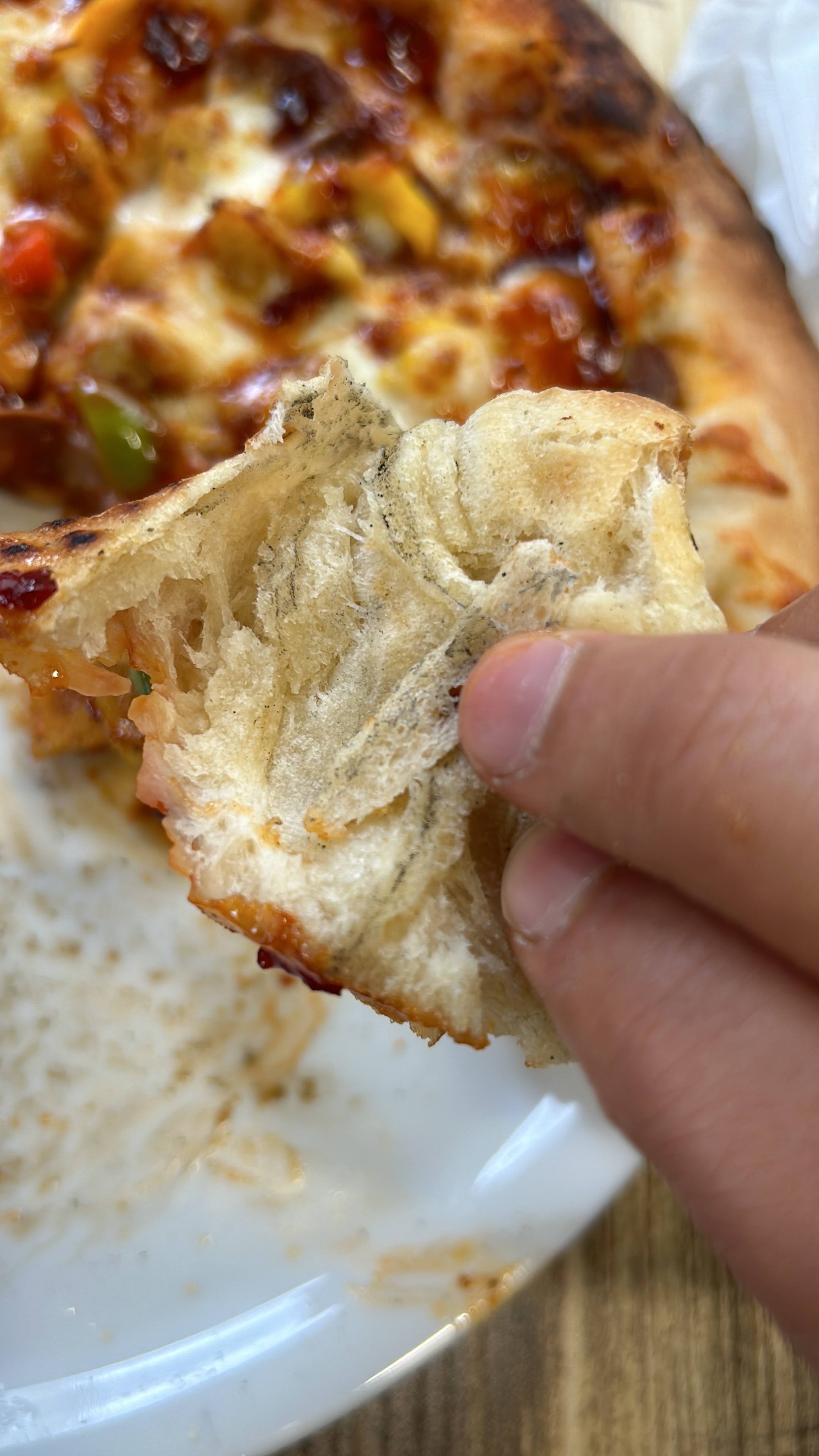J’ai commandé une pizza sur place ( hot spicy) j’ai trouvé de la moisissure… j’ai demandé discrètement ( Il y avait d'autres clients entrain de manger) Le serveur m'a dit que c'était le charbon du four… après 5 min il m’a proposé de la changer.. et c’est la ou le chef a commencé à parler super mal … donc j’ai refusé qu’il me refasse une autre Ps: je suis tunisien