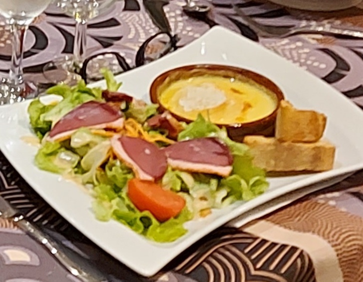 Extrêmement déçus par rapport aux avis des internautes. Les lardons ne comportaient que du gras et baignait dans des feuilles de salade défraîchies. Le gratin dauphinois est une horreur: sans goût, là aussi pommes de terre trempant dans de la flotte. Dessert genre cafétéria de supermarché. Et tout ça pour 24 euros et des poussières ! Ce n'est pas de la cuisine.