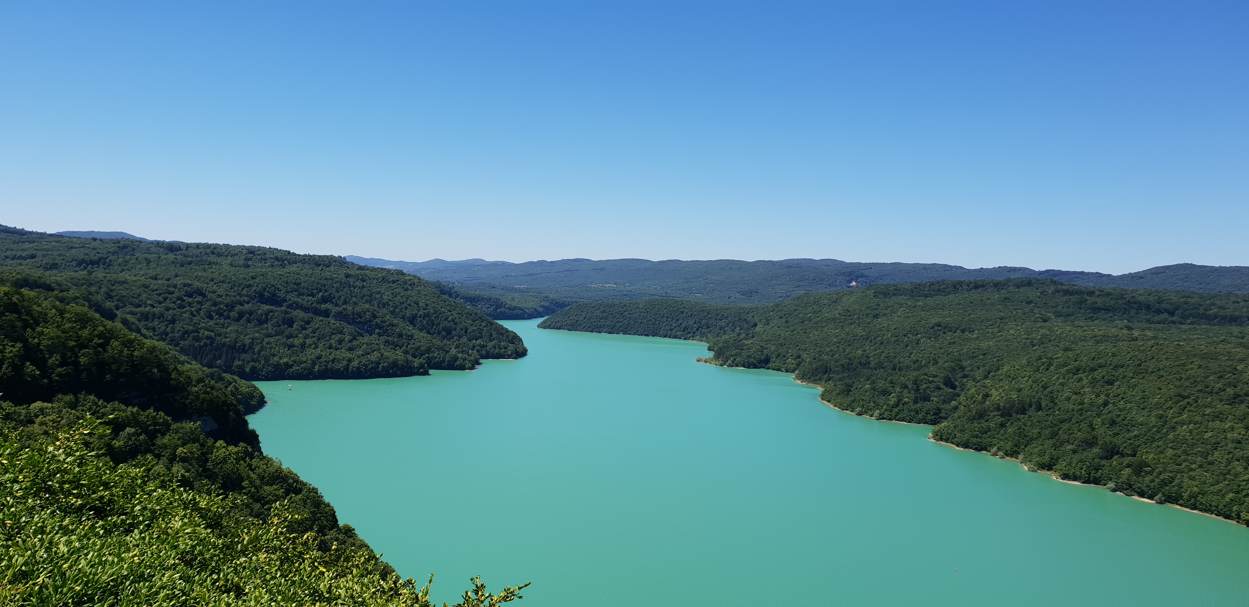 Magnifique point de vue sur le lac de Vouglans. Dommage que l'accueil ne soit pas à la hauteur du lieu.