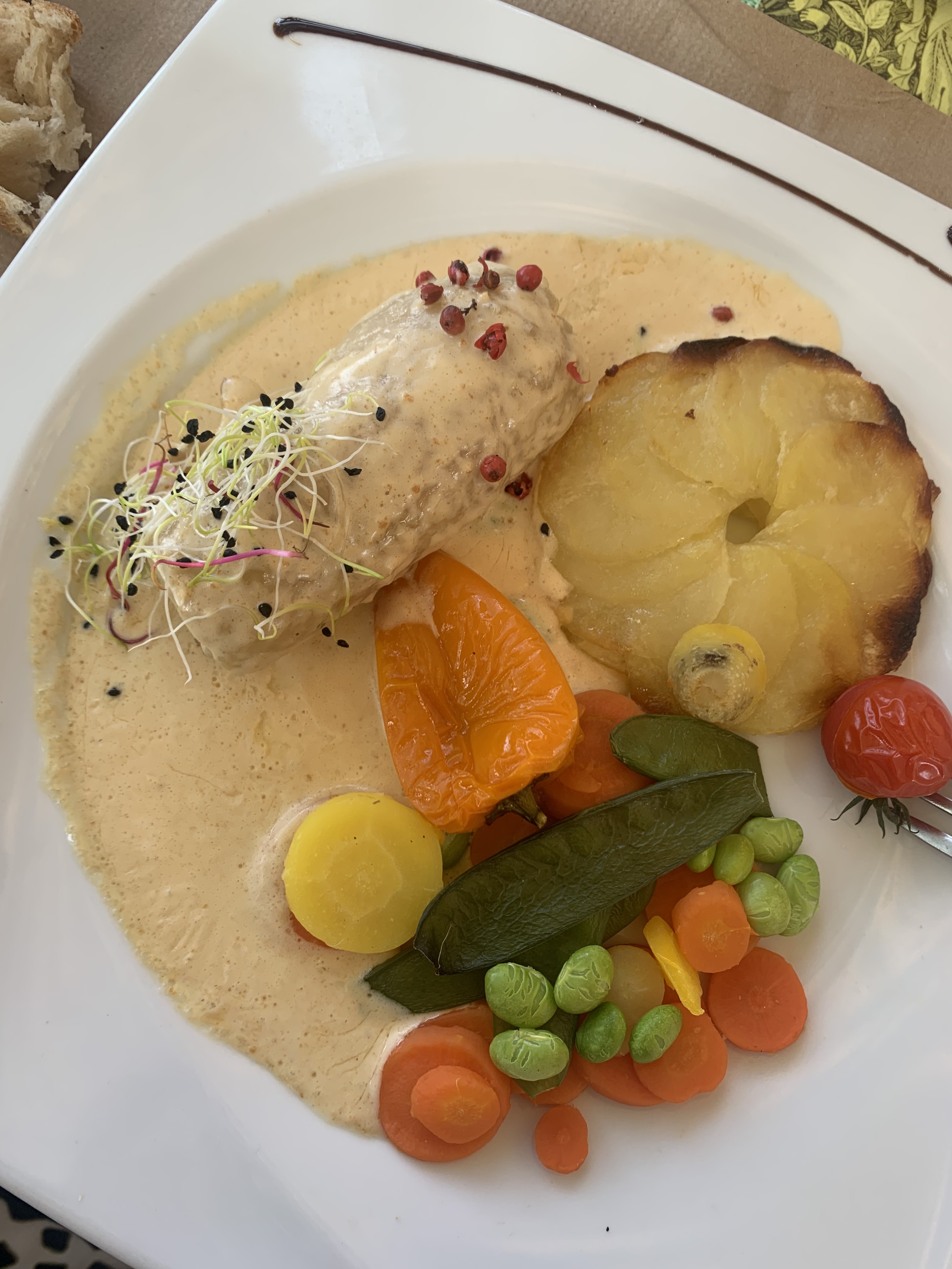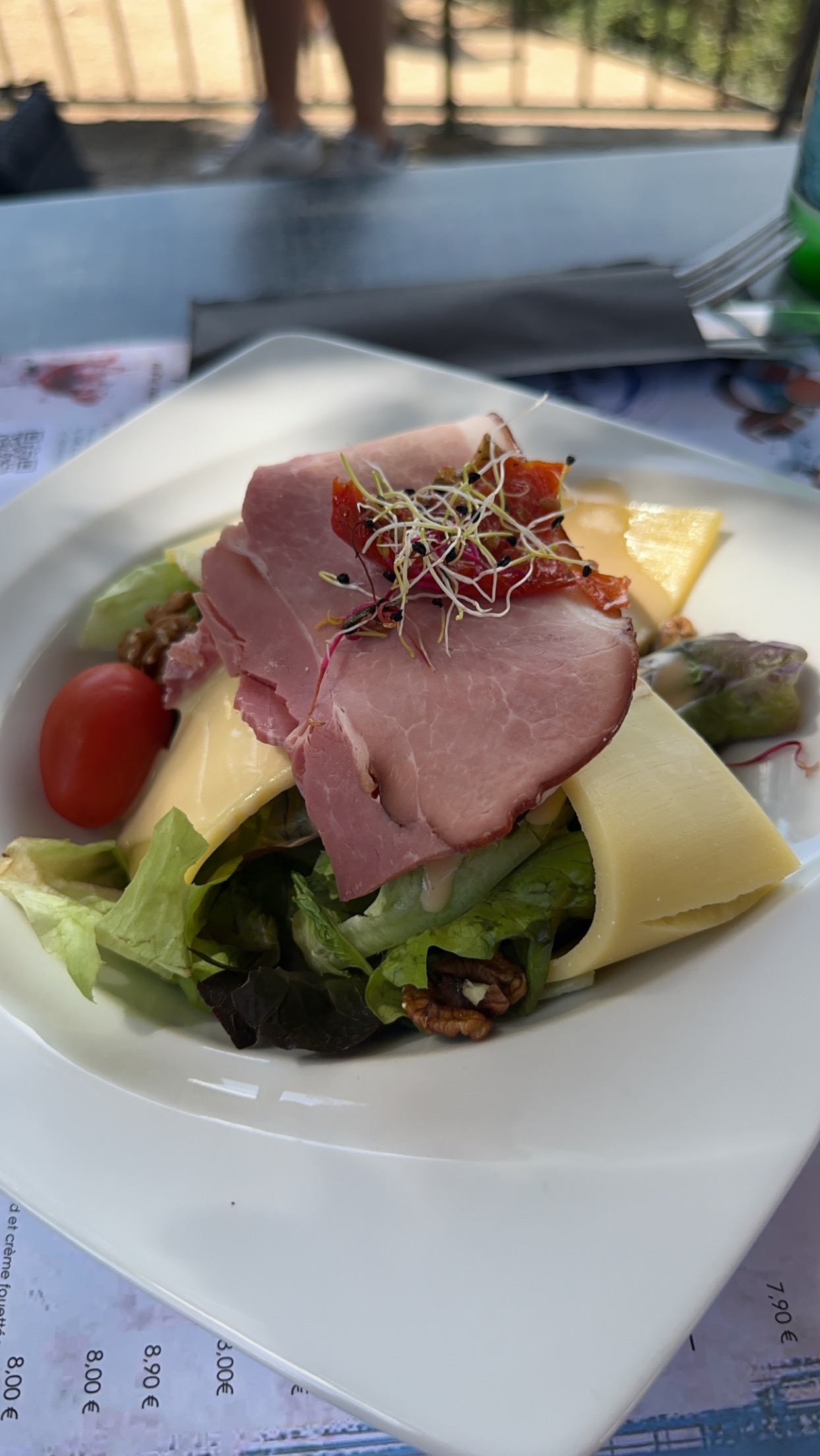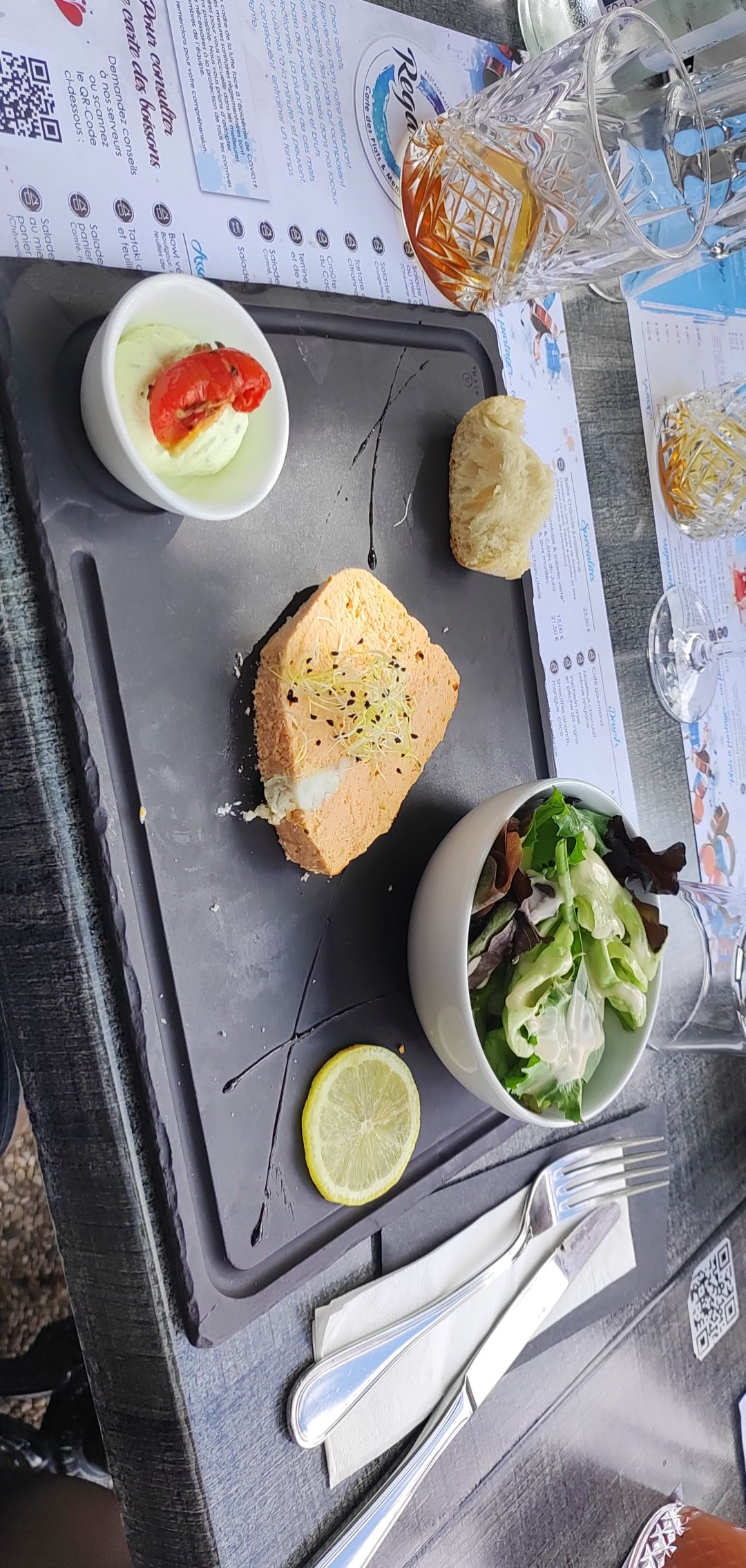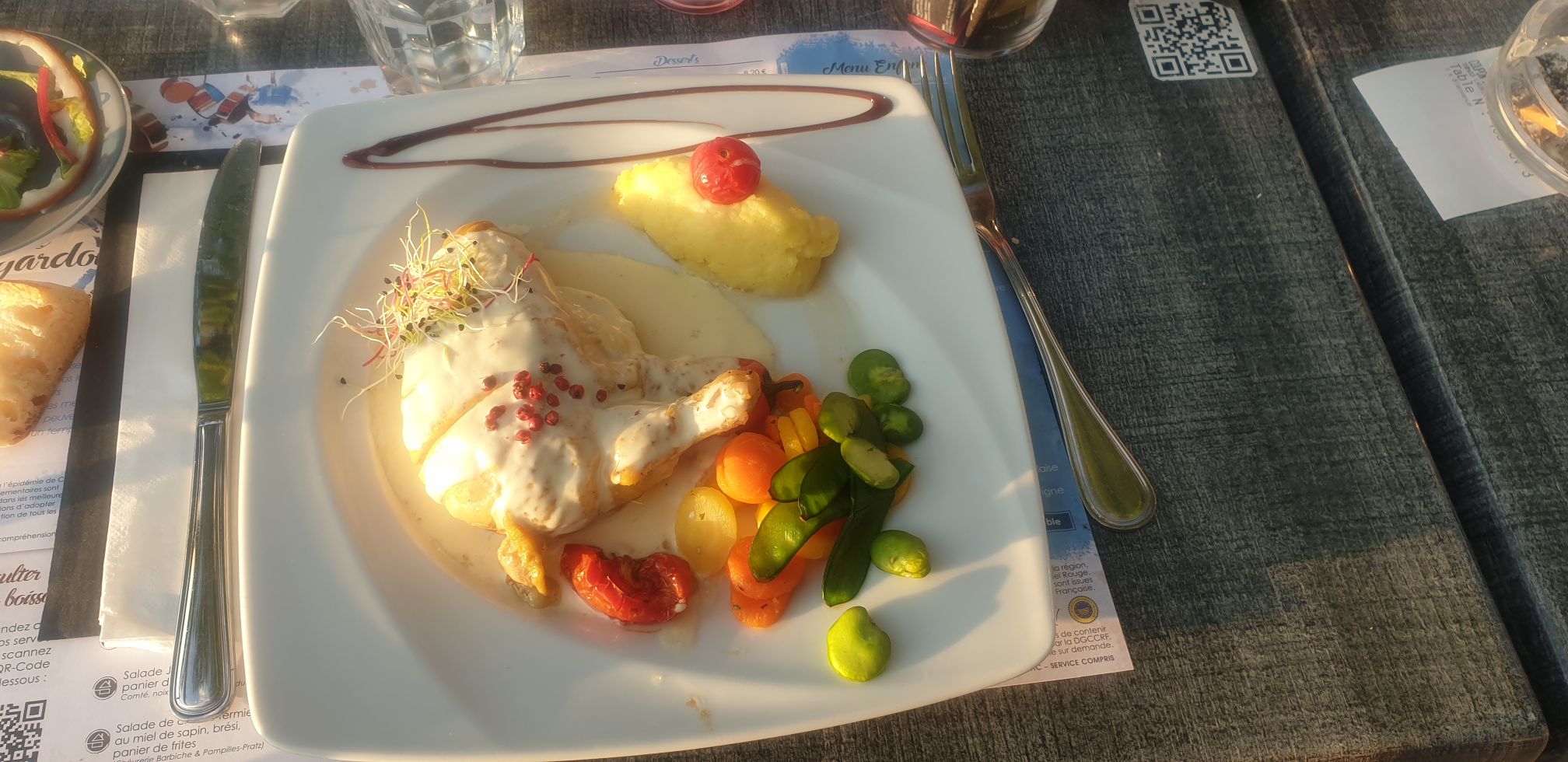 Sûrement un des plus beaux cadres / endroits de la région . Le restaurant : bonne accueil , endroits calme ( même plein ! ) , les salades sont bonnes je recommande, ballottines de poulets par contre pas assez cuites à l’intérieur , vraiment dommage , le désert c est good Aussi 👍. Les assiettes sont quant -à elles très bien dressées. Malgré tout nous reviendront mais nous resterons sur les des plats salades 🥗plus simples .
