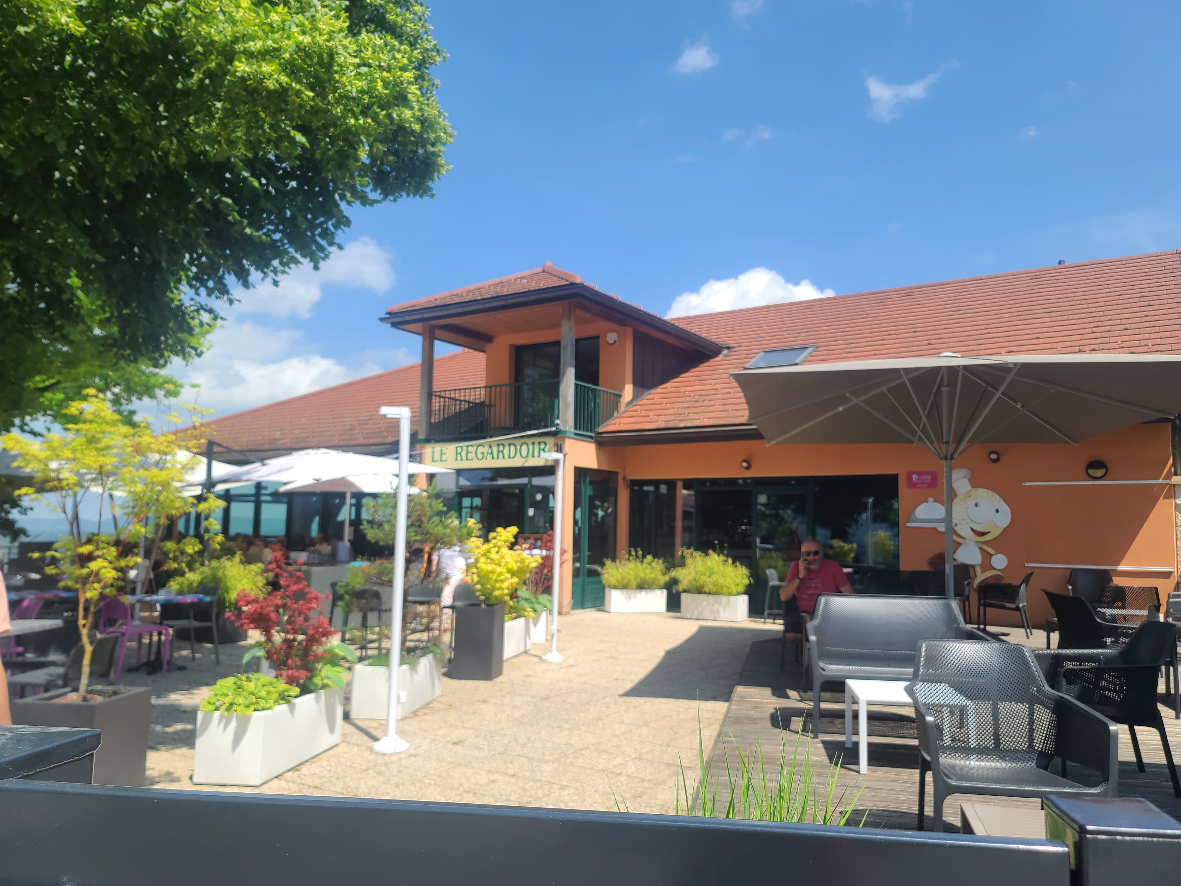 Splendide panorama depuis Le regardoir . Établissement surfréquenté ...pensez à réserver au moins 48h avant (en haute saison). Personnel accueillant. J'ai pris seulement un verre je ne peux donc pas commenter la restauration.