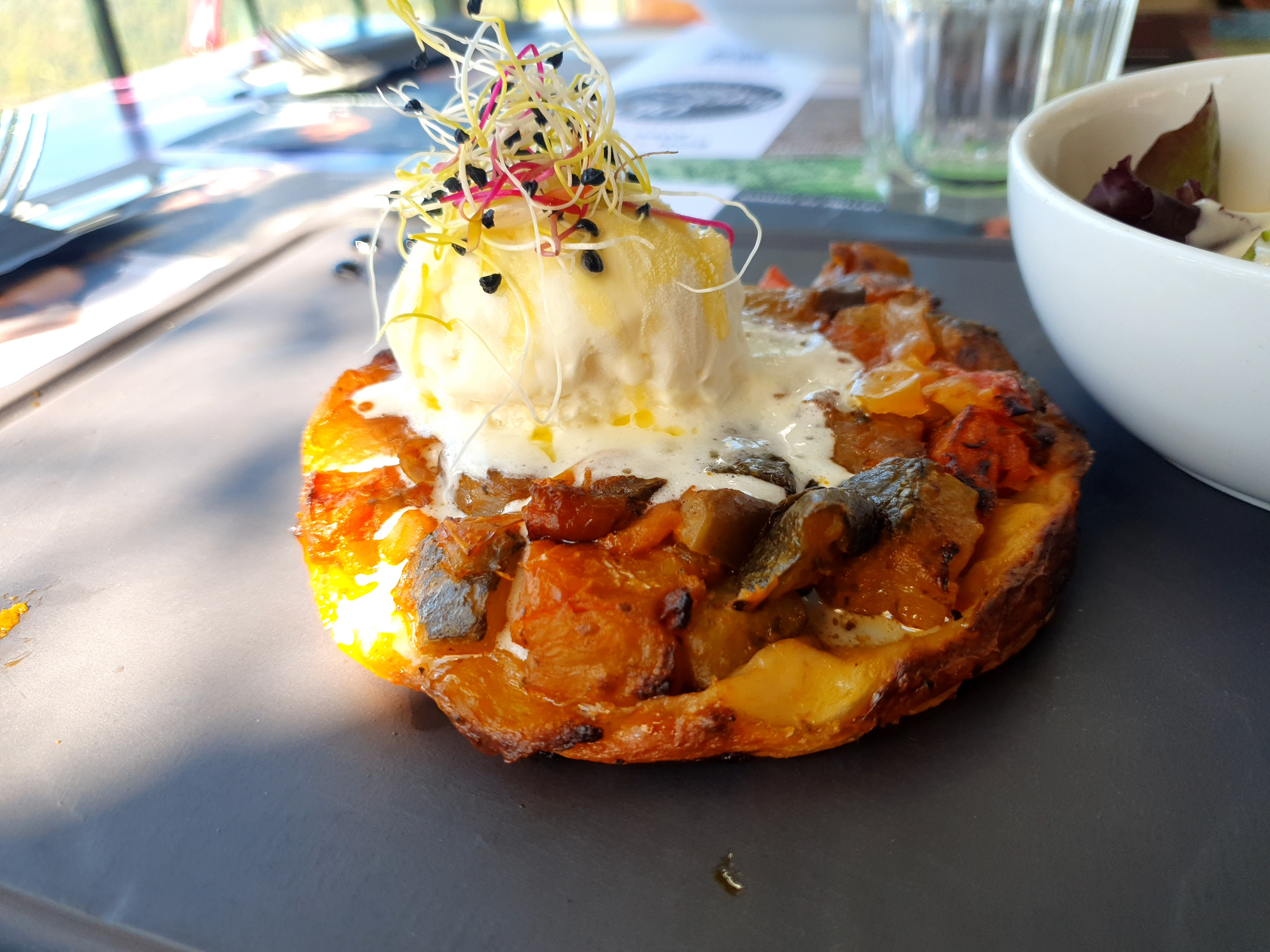 5 étoiles pour la vue et le lieu 3 étoiles pour la qualité 3 étoiles pour le prix 4 étoiles pour l'effort du local Cependant les plats vegan ont de la crème et du beurre... J'hésite entre 3 et 4 au global, je met 3 parce que finalement ce n'était pas si exceptionnelle si vous faites abstraction de la vue et puis les pattes Barilla à 18€ l'assiette c'est un peu cher. Hors si vous êtes sur une période difficile pour l'usage de la terrasse vous allez raté une partie de l'intérêt. Par contre en étape sur une promenade d'été c'est pas mal, ce serait sûrement 4 étoiles.