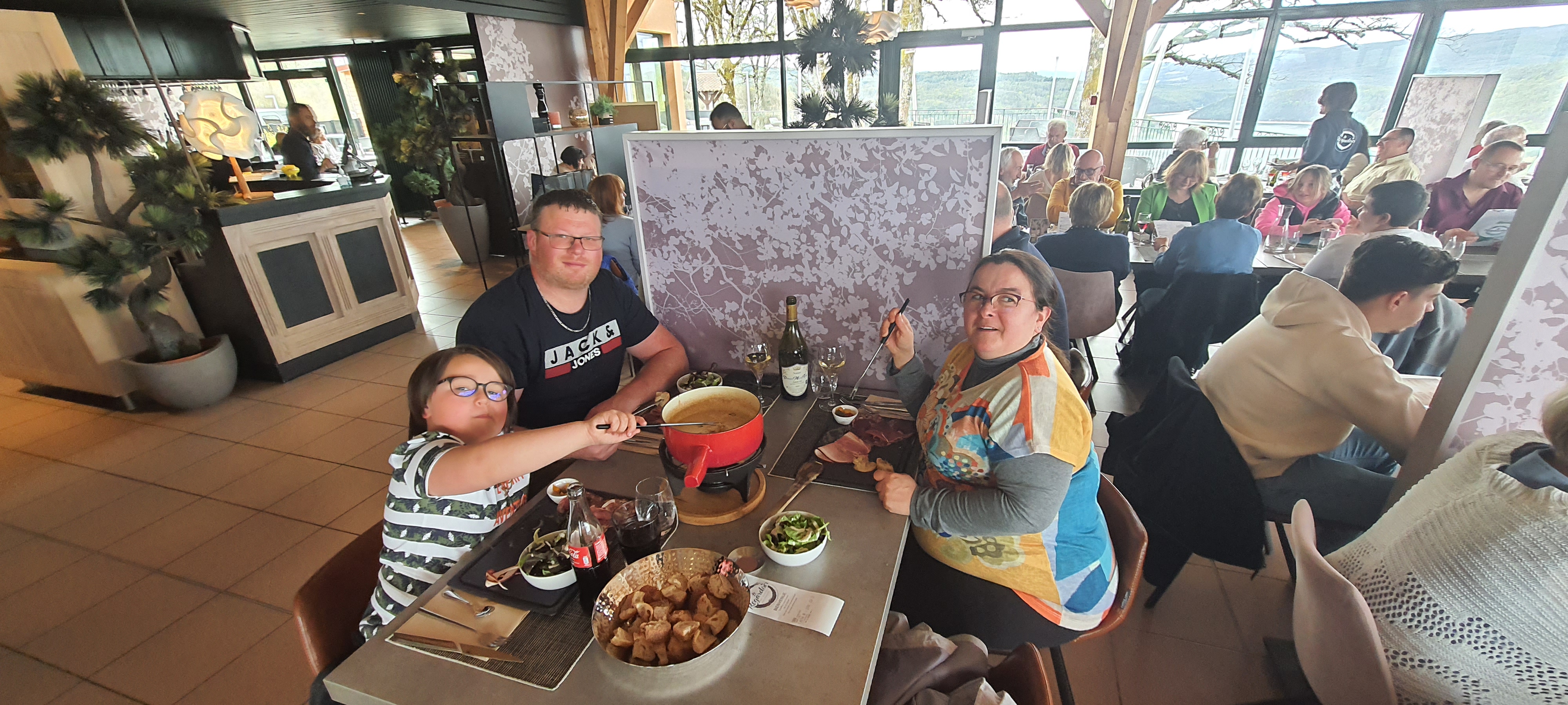 Restaurant dans un cadre exceptionnel, avec vue sur le lac de Vouglans ! Personnel très souriant et sympathique !!! Et le repas, excellent !!! Si vous aimez la fondue, elle est extra ici humm !!!!! Menu enfant très apprécié par notre fille ! Juste un petit bémol, les salades en guise de plat de nos plus grandes filles étaient un peu chères, beaucoup de verdure pour 15€ la salade.....mais elles l'ont trouvé très bonne ! Coupe de glace excellente !!! Petit conseil, réservez votre table à l'avance si vous voulez avoir la vue sur le lac !