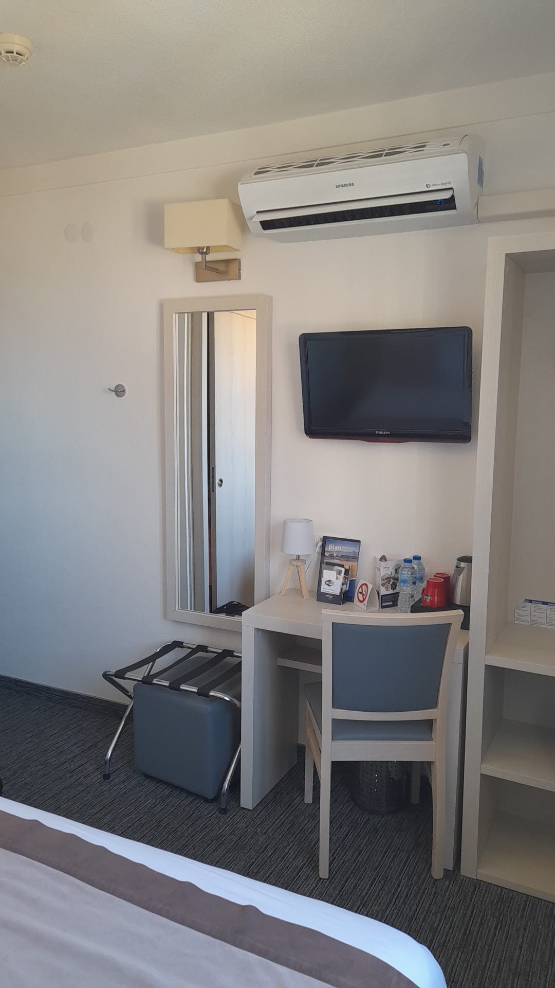 Hôtel choisi avec wonderbox, chambre propre avec petite terrasse très appréciable la literie un peu dur mais sa dépend de chacun sinon très confortable quand même, la clim est un vrai plus. Nous avons passé un très bon séjour dans cet hôtel .