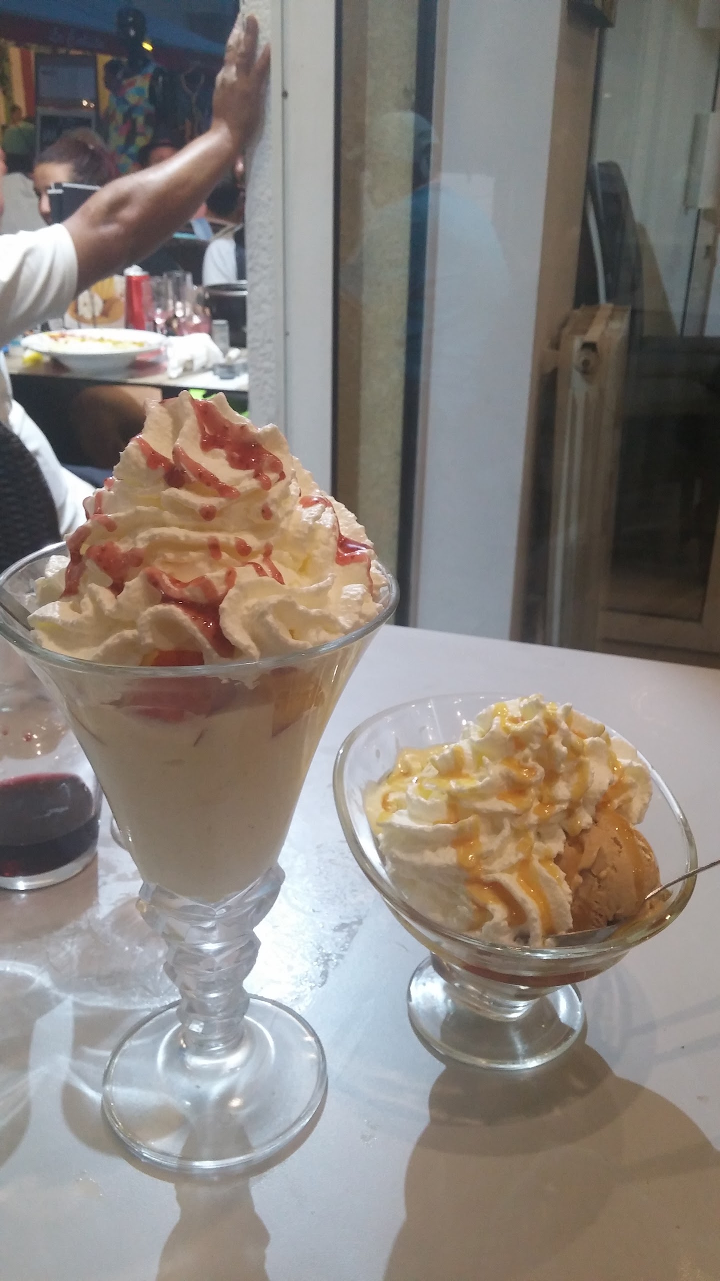 Ce 23 juillet, nous avons voulu prendre une glace, nous avons eu le droit qu'à du rap en musique, les bananes sont coupées en petits morceaux par ce qui ressemble à la patronne à mains nues pleines de vernis et le reste, pas d'eau à table si on ne réclame pas, pas de serviettes même en réclamant. Et la serveuse (jeune maghrébine qui becotait et se laissait plauter par le jeune serveur (maghrébin) qui mangeait en salle. Toilettes qui servent de stockage et innondees au sol, pas de quoi se sécher les mains... Et j'en passe. Donc. Oui piège à touriste sans intérêt. A fuir !