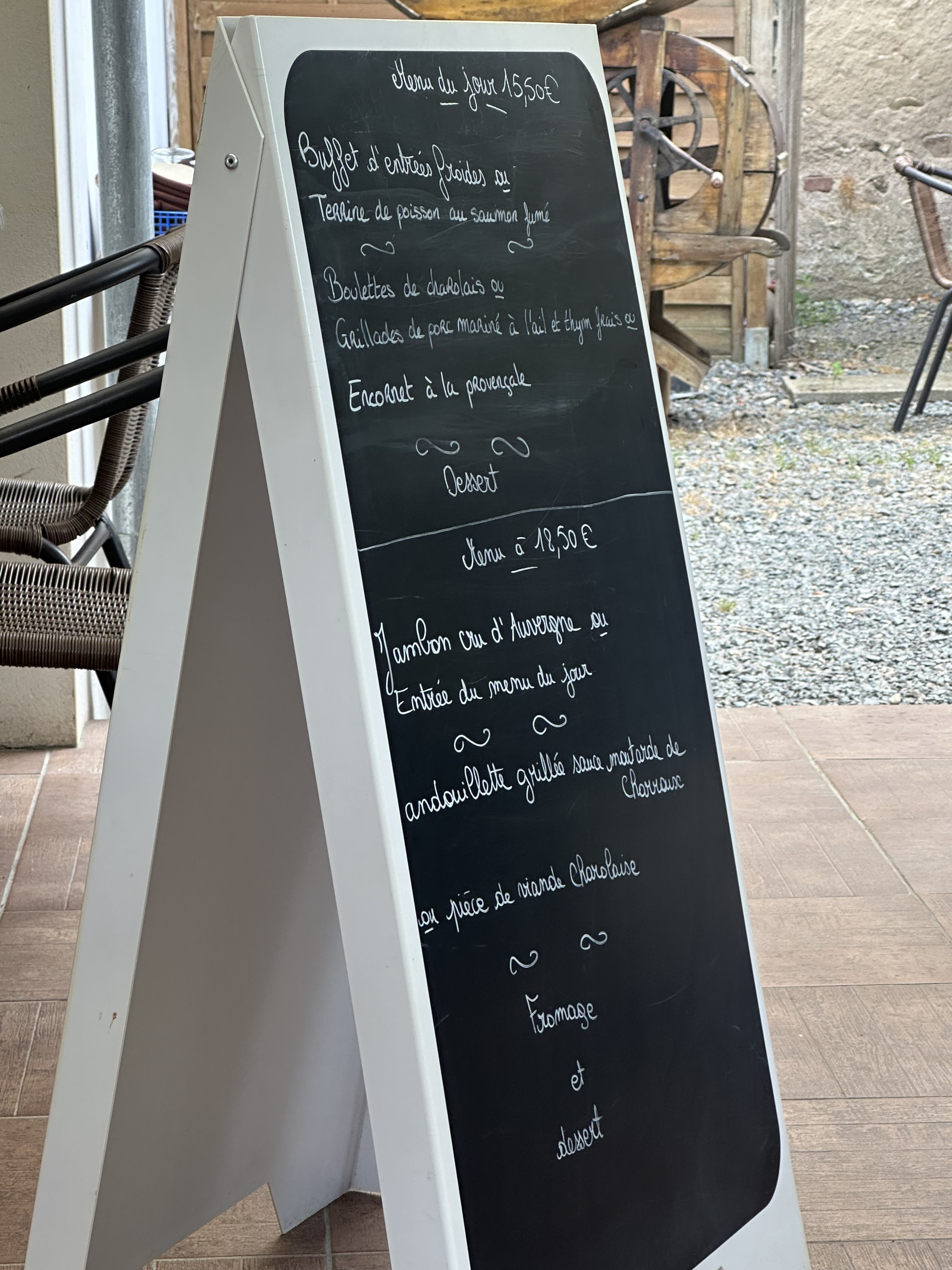 Ne pas fier à l'aspect extérieur. C'est un très bon restaurant. L'accueil et le service sont excellents, les plats sont copieux et bien cuisinés, la salle est agréable avec une jolie terrasse. Nous y avons passé une soirée très agréable. Une mention spéciale pour le vin local, le Saint Pourcain, qui mérite d'être découvert.
